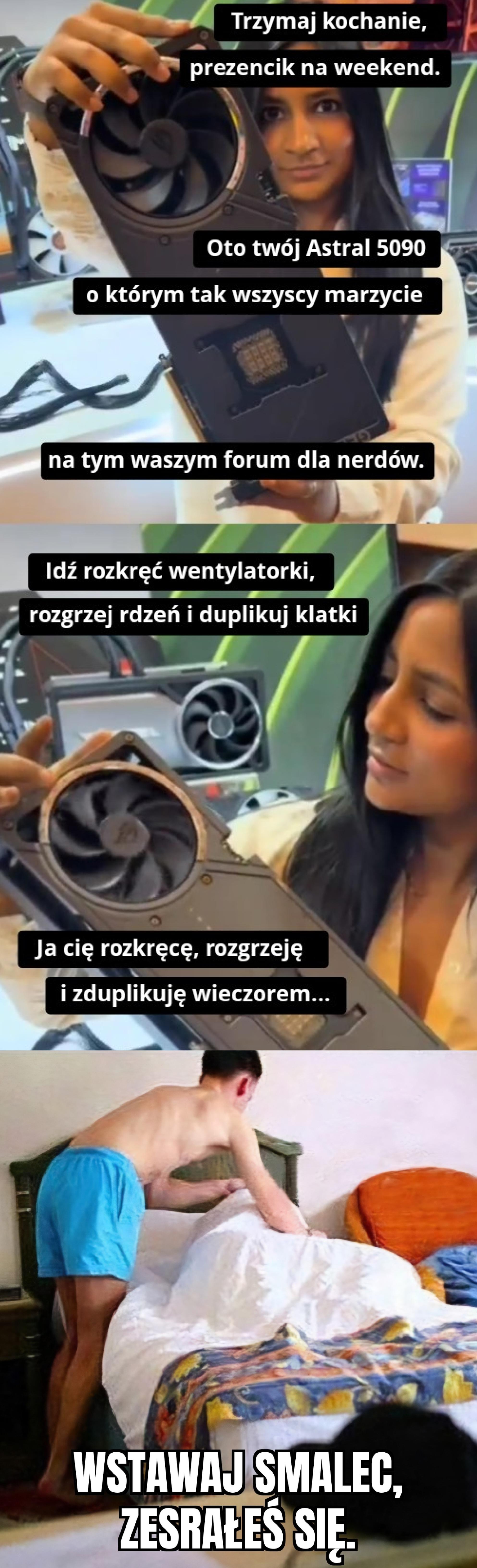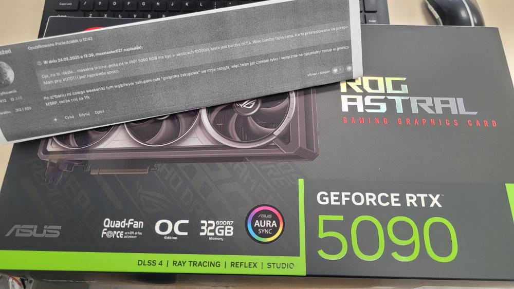 Też dziś dostałem Astrala LC (żeby nie było foto z kartka ) którego zamówiłem w piątek, choć i tak dopiero w sobotę lub niedzielę będę miał czas go zamontować, przy okazji muszę wymienic chlodzenie bo w starym poszła pompka, w czwartek przyjdzie nowe plus jeden wentyl T30 bo chce zrobić Push/Pull na Astralu, wcześniej jak miałem 2 lata Suprim Liquid to też tak jechałem. Także montaż dopiero w weekend a więcej testów pewnie za jakiś czas bo nastawiałem się po wszystkich plotkach że poczekam do marca, Mam nadzieję że wszyscy co czekają dostana jak najszybciej swoje modele23 punktów