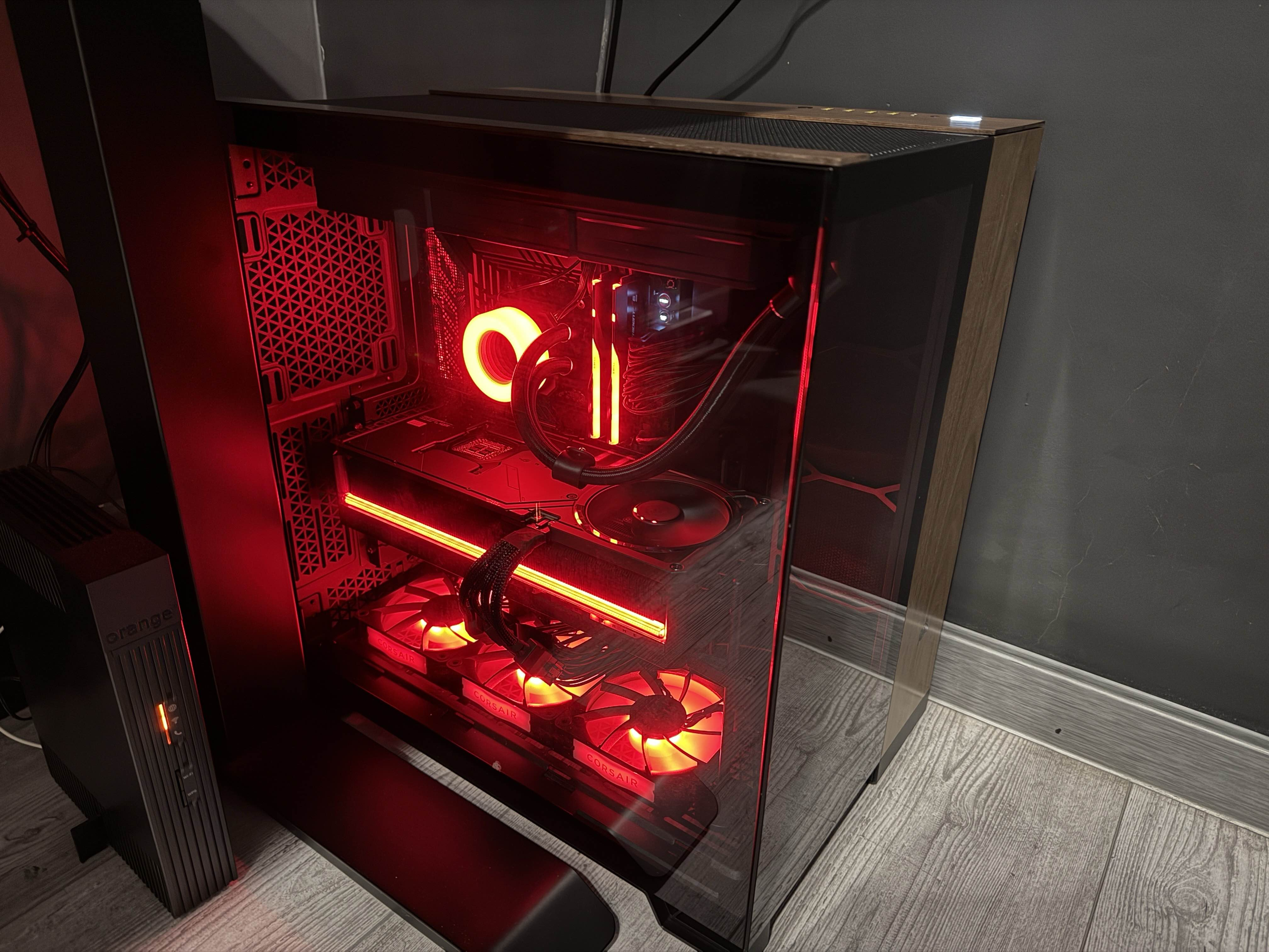 Ok,Nowy Rok nowy projekt. Pomysł jest powiedziałbym nietypowy,CLC w full custom case z dosyć niespotykanym wyborem opcji zarówno jeśli chodzi o stylistykę jak techniczne założenia. ZERO NOISE PC CLC. Łatwo powiedzieć trudniej zrobić. Piszczące cewki GPU,szmer pomp,odgłosy pracy zasilacza,szum wentylatorów...wszystko to ma zniknąć. Konieczne ekstremalne podejście,no i jest ekstremalnie. W skrócie,samo projektowanie i opracowanie koncepcji to już była Odyseja trwająca wiele miesięcy do tego wiele rzeczy należało po prostu samodzielnie przetestować...wykonać prototyp. Dlaczego? Nie ma sensu wykonać w aluminium na CNC docelowego projektu dopóki nie mamy pewności że koncepcja jest prawidłowa i działa jak chcemy. Tutaj jest też szkło Antisol grafit 8mm grubości jako kaseta/zabudowa bebechów kompa które swoje kosztuje. Z tego powodu ten projekt pożarł setki godzin pracy ale o tym później... Ogromne podziękowania dla Skeepera,Zawiszy a przede wszystkim Łukasza za ich nieugiętą wolę i cierpliwość do tego projektu. Nietypowo...bo to nie początek tej historii ale,do detali przejdziemy później. Graty odebrane z lakierni proszkowej. Zbiorcza fota wszystkich elementów aluminiowych po lakierowaniu. Płyta nośna hardware,top,dół,boki to aluminium PA4 grubości 4 mm. Płyta podstawy 8mm,inne elementy były z grubego na kilkanaście lub kilkadziesiąt mm PA4 (zabudowa pompa D5) Wszystkie prace na CNC wykonał Skeeper po wcześniejszym przygotowaniu plików w Fusion 360 przy których spędziliśmy ... tygodnie. Nie ma litości,wszystko musi być perfekcyjnie dopracowane i przemyślane bo jak się pomylisz/wykonasz i nie pasuje to topisz worek kasy w poprawkach. Co do szkła 8mm grubości Antisol grafit to też była jazda. Materiał łatwo kupić ale znaleźć firmę co to da radę zeszlifować pod kątem 45 stopni a potem skleić klejem UV precyzyjnie i bez przekoszenia wymiarów ... droga przez mękę. Najpierw próbki i klejenie dla zbadania czy to wykonalne. Jedna uwaga co do kleju UV jaki tu użyłem, na spoinie minimalna ilość kleju wydostała się na kątownik aluminiowy przyłożony do szkła dla złapanie kąta 90 stopni. Trzyma jak wszyscy diabli,nie dałem rady oderwać kątownika więc spoina na całym styku szkła jest piekielnie mocna. Musi być...szklana zabudowa będzie dźwigać masę hardware,około 30kg waży wszystko co jest do neij wsuwane a samo szkło kolejne kilkanaście kg. OFC żeby nie było z pięknie to lakiernia dowaliła do pieca. Dostali śrubki M3 oraz M4 do wkręcenia w lakierowane elementy i ... zapomnieli. No i nawalili lakieru proszkowego w gwinty więc masa roboty żeby to ogarnąć. Dobra,nie ma co marudzić tylko trzeba składać. Podpory PSU jako pierwsze. Kołki dystansowe płyt podporowych urządzeń Aquacomputer. Mobo najlepiej montować z kablami,mniej kombinowania z wpinaniem potem wiązek kabli. Flip i jazda dalej...ciemna strona. Szyny mocowania PSU. Stelaż GPU Jakby kto pytał czym dokręcam złączki to nie paluchami bo nie mam do tego nerwów. Z montażem pomp to sobie jeszcze poczekam bo lakiernia zgubiła dystanse od mocowania pomp...przepadły i tyle. Cóż,Skeeper wykonał nowe i przesłął do nich wiec polakierują i podeślą to będzie dalszy montaż. Co do zabudowy i systemu wyciszenia pomp gruby temat oj gruby. Listwy z oświetleniem neon dla jasnej i ciemnej strony projektu wyglądają tak. Tym bałaganem zajmiemy się później. Ok,tyle na razie...i tak ściana fotek i tekstu wleciała i nie chcę przesadzać.20 punktów