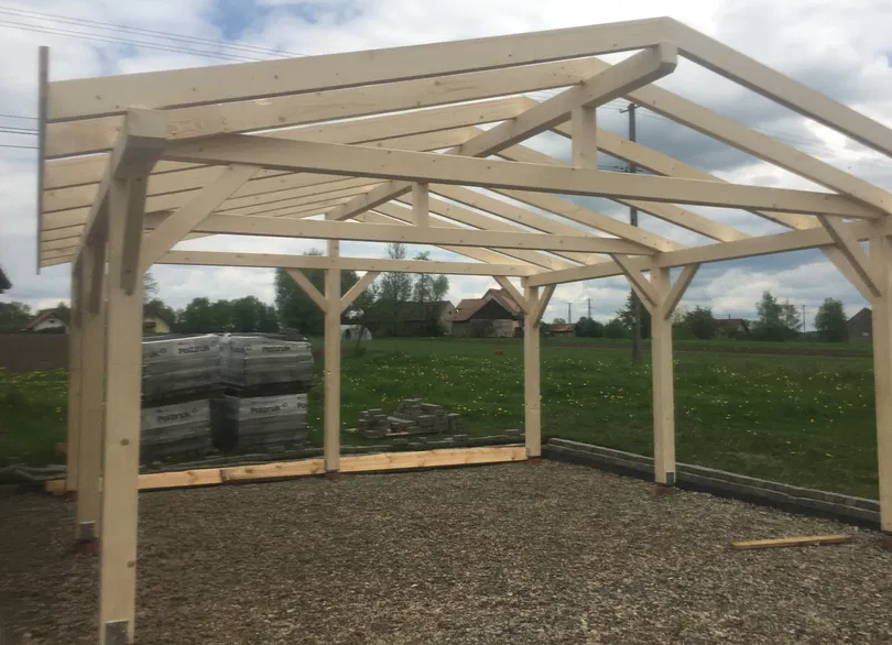 @lesiu155, cała różnica jest w materiale (stal vs aluminium) oraz w miejscu zaznaczonym strzałką: Tanio: Estetycznie: W jednym smukła, fancy konstrukcja z ukrytymi śrubami, w drugim toporna i ciężka wizualnie z widocznymi na zewnątrz śrubowymi mocowaniami. Pomijam już fakt kwestii trwałości stali, która z wiekiem po prostu będzie nosiła ślady rdzy. Takie dodatki jak kwestia rynien również pomijam. Generalnie jak chodzi o jakość wykonania to sam stałem przed podobnym dylematem podczas wyboru wiaty na przyczepkę kempingową. Do wyboru był gotowiec z allegro z elementami montażowymi jak tutaj: Albo ponad 2 razy droższa (a może i jeszcze więcej bo jeszcze nie zrobiłem deskowania, który to gotowiec ma) konstrukcja wykonana przez cieślę z ukrytymi łączeniami jak tutaj (u mnie jest bardzo podobna konstrukcja, praktycznie identyczna tylko węższa): Odnosząc się do wyżej pokazanych metalowych wspornikowych carportów, czy dałbym za taki 30 tys zł? Nie, bo nie przepłacałbym za wspornikową konstrukcję :p Tradycyjna wyjdzie dużo taniej. Z resztą, ja i tak wybrałbym drewno. Ale rozumiem, że ktoś ma nowoczesny dom, nowocześnie na podwórku i ma taki kaprys by sobie postawić coś wspornikowego oraz jest purystą wizualnym i nie chce mieć łączeń na widoku. No to płaci.
