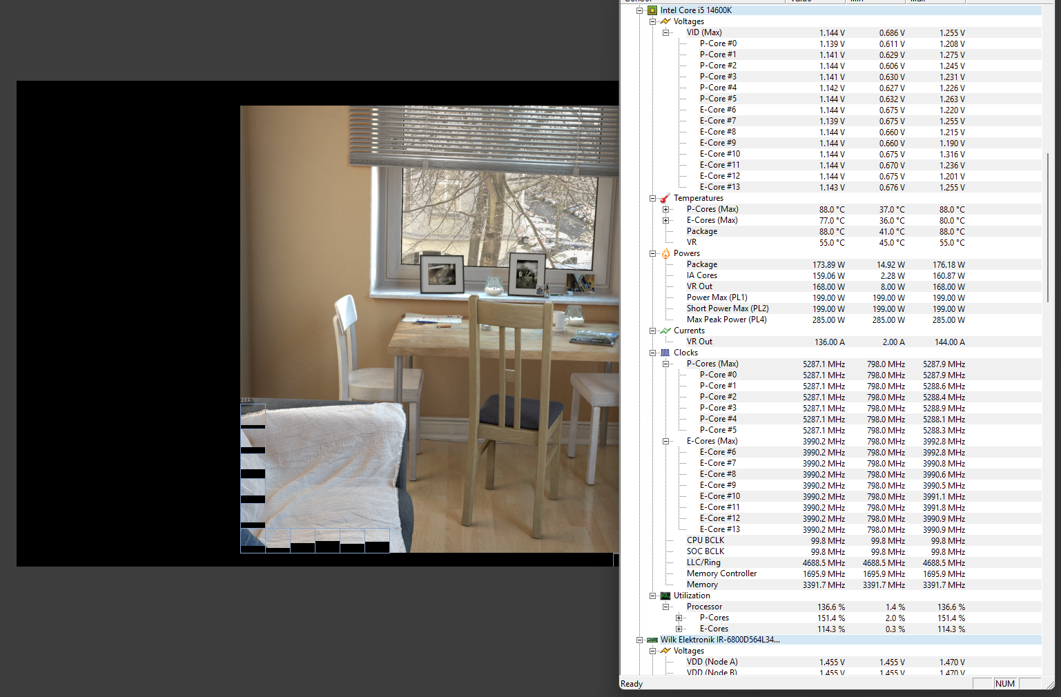 12. Cześć, dzień dobry. Proszę o pomoc bo już nie daje rady. Kupiłam na ostatnim promo 14600k, do tego płytę Asus tuf gaming na b760 i pamięć RAM Goodram 32GB 6800. Chłodzenie thermalright Phantom spirit, obudowa dobrze wentylowana z książkowym ustawieniem wentylatorów. Problem jest taki jak zawsze w przypadku tego procesora - temperatury. Cokolwiek bym nie zrobiła, proc dobija do 95 stopni i zaczyna zbijać taktowanie. Po próbach z UV udało mi się utrzymać 5000-5100mhz. Pasta rozprowadzona prawidłowo, chłodzenia lepiej już nie docisnę. Próbowałam radzić sobie za pomocą poradników, chata gpt i poległam. Proc pomimo teoretycznego UV nadal żre w occt 181w. IA CEP - kiedy wyłączę tą opcję temperatury spadają bardzo mocno, pokazuje zużycie 120-130w i wszystko jest super...tylko wyniki w cb2023 spadają na łeb na szyję. Co mogę robić źle? Ubiegając: Microkod ustawiony właściwie w biosie.