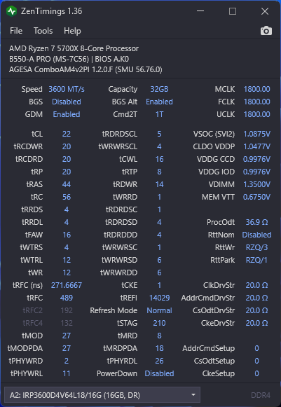 Próbowałem załadować profil XMP jak i ustawiać go ręcznie, jednak z CL18 3600Mhz jest niestabilnie i sypie błędami w OCCT ( test memory jak i cpu+ram).