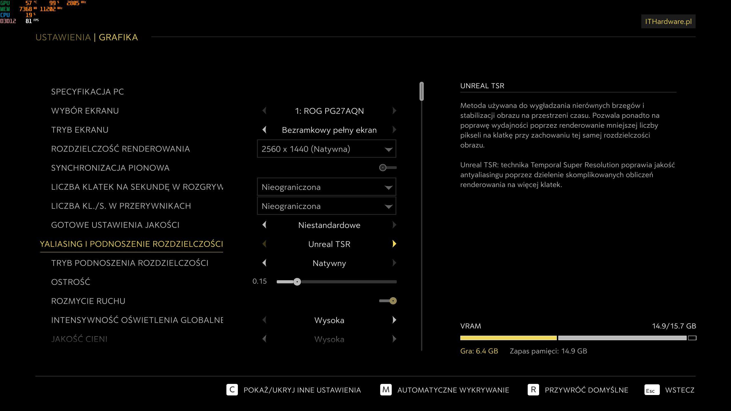 Czyli tak, jak myślałem, włącza Ci się skalowanie obrazu. DLAA jest kapkę wydajniejsze od TSR natywnego, a tutaj ewidentnie wyniki dla DLSS z profilem jakość (najpewniej). Być może to jakiś błąd w grze. Zresztą włączone skalowanie pasuje do Twoich wcześniejszych wyników, gdzie w wyższej rozdzielczości "przewaga" 285K jeszcze wzrosła (tak właśnie działa skalowanie obrazu, wyższa rozdziałka -> wyższy zysk ze skalowania). No to kurtyna na mocarzu 285K w Mafii