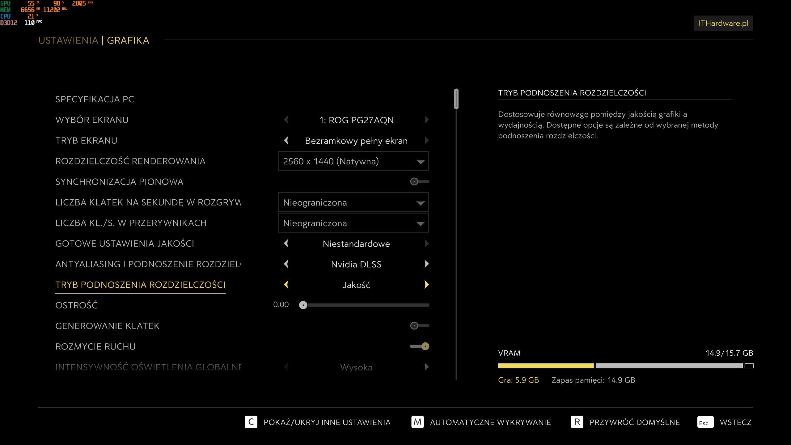 Powtarzam to, co pisałem wcześniej. Sprawdź dobrze na Intelu, czy detale są rzeczywiście dobre i czy wszelkie dopalacze/upłynniacze naprawdę są wyłączone. 5090 w 1440p ledwo 60 FPS przekracza: A Ty twierdzisz, że na 285K dostaje magicznych mocy i w 3440x1440 robi 130+ FPS (a nie robi).