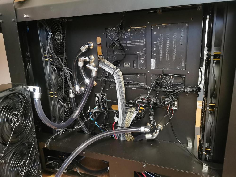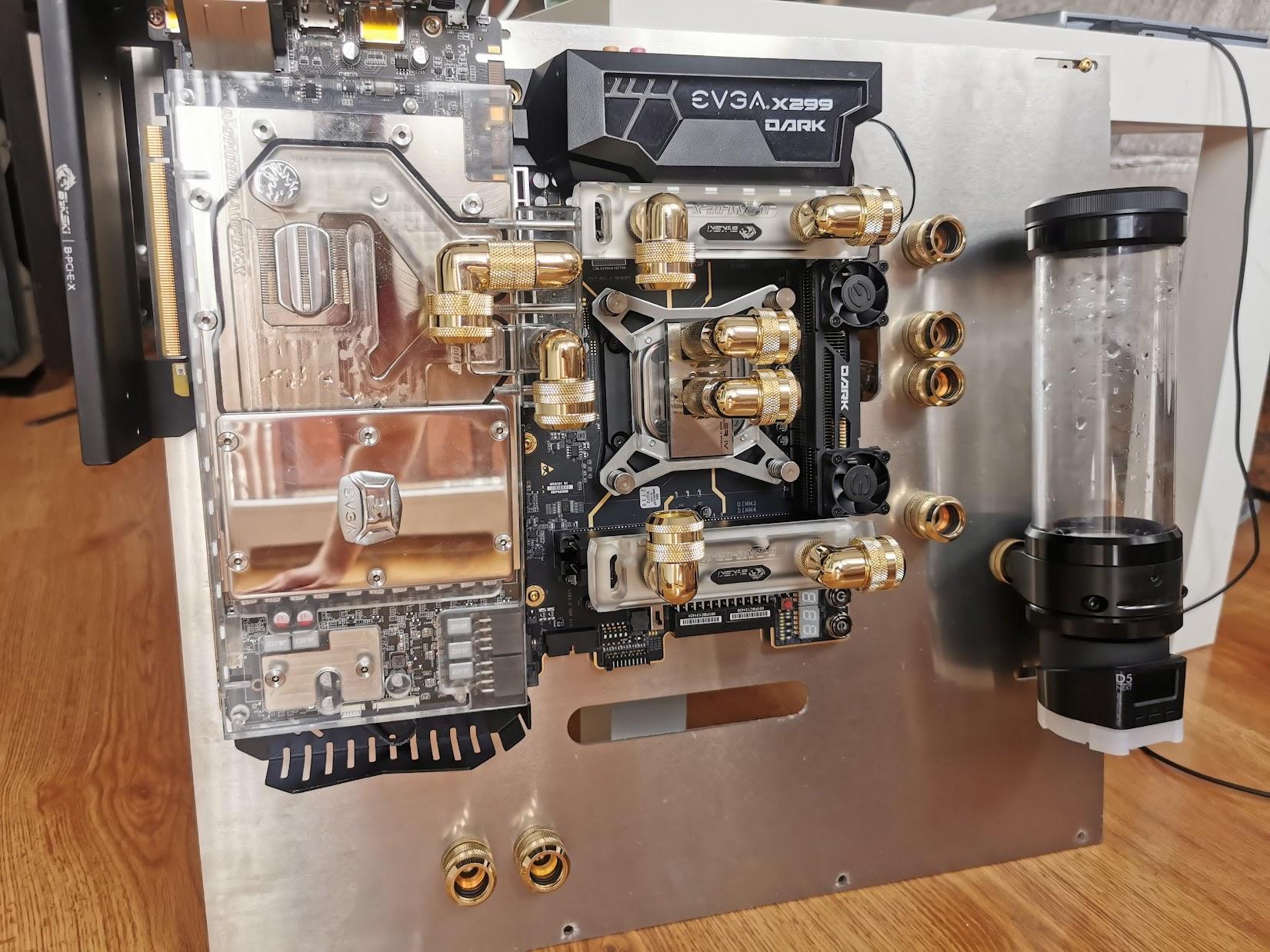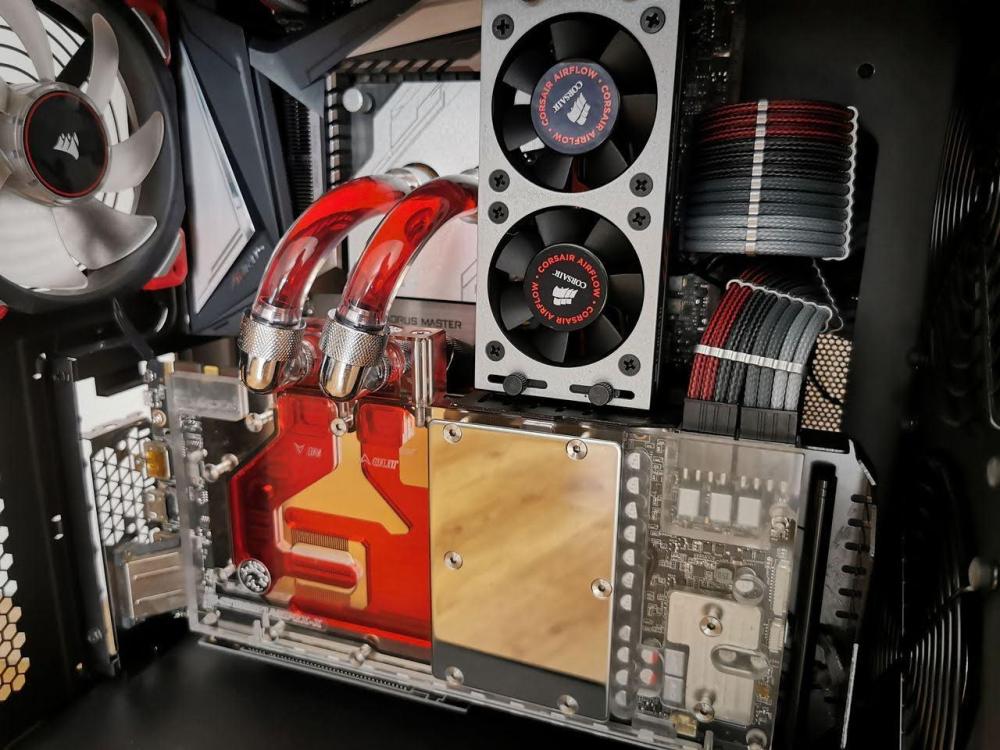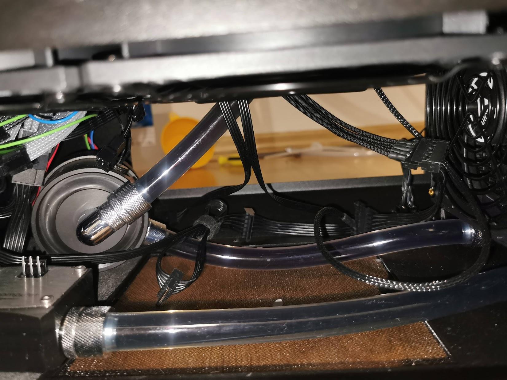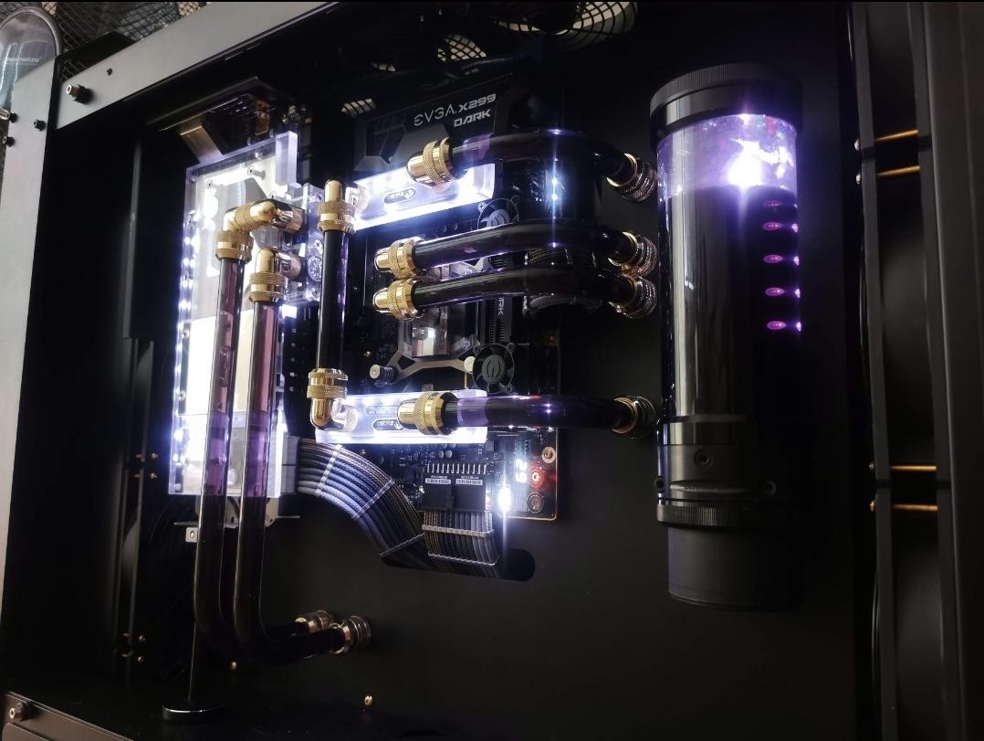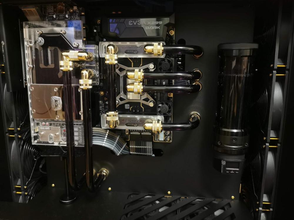 2. Dobra, udało mi się odzyskać konto w końcu. Myślałem że po zamknięciu forum Pclab wszystko już umarło ale tutaj się śmietanka przeniosła. Sławek widze już opisał jak u mnie było z 2 pompami. Miałem bardzo dużo połączeń, ogrom złączek katowych, 3 restrykcyjne chłodnice z czego jedna MORA 420 więc dla bezpieczeństwa użycie 2 pomp wydawało mi się rozsądne i nie marnowały się tam. Natomiast nie było takiej opcji że druga pompa jak przestawała działać to blokowała tą pierwszą. Wirnik w D5 jest przecież tak skonstruowany że woda zasysa na jest środkiem i rozpryskiwana na boki więc jak wirnik nie pracuje to woda sobie po prostu przelatuje tamtędy bez żadnych problemów. Gdyby jedna pompa padła to pojedyncza D5 też by to udźwignęla bez problemu. Na początku miaęm zestaw oparty o 2 chłodznice 420 + 360 XT45 i to pracowało z jedną pompą D5 i z uwagi na połączenie równoległe cpu+gpu miałęm na zimnej cieczy 285L a na rozgrzanej podczas pracy do nawet 355L/h. Potem przesiadłem isę na X299 Dark i dołożyłem bloki ram oraz 1 pompie zeszło wszystko do 185 L/h, więc wiedziałem że już raczej jak zechce dołożyć cokolwiek więcej to zacznie to mocno spadać, a że planowałem zaprojektowanie swojej konstrukcji to musiałem rozważyć opcję 2 pomp jak miała tam siedzieć MORA 420 Więc stanęło na połączeniu 2 pomp, jedna po drugiej z czego jedna siedziała w combo rez/pompa a druga w piwnicy wygłuszona i niemal niesłyszalna. Przy takiej ilości połączeń, złączek, restrykcyjnych dużych chłodnicach etc nie czułem się pewnie z 1 pompą zwłąszcza że nie chciałem aby była zbyt głośna i wolałęm 2 sztuki odpalone na 50-65% niż jedną pompę na 100%.