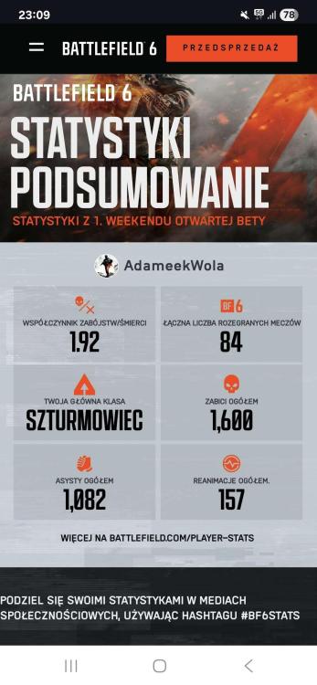 Jak wrażenia po becie? Preorder kupiony? Ja po 53 godzinach(no może trochę więcej bo nie pamiętam ile było w Pre-Alpha) stwierdzam że jest miazga, co prawda rozgrywka na małych mapach stała się bardziej CODowa, ale chociaż nie jest taka rozlazła jak w poprzednich częściach BFa. Mam nadzieję że na premierę nic nie spierniczą. Ograne na 3440x1440 12600kf + 3080