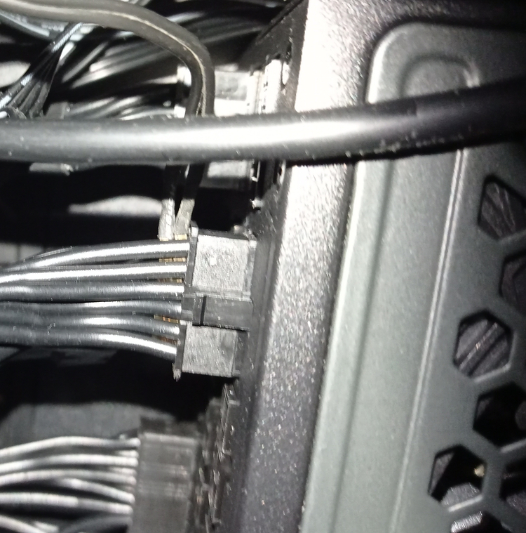 ogarnąłem sobie czujnik temp do gniazda 12v-2x6 przy gpu i zasilaczu. Na płycie mam opcję podłączania. w hwinfo ustawiłem alert że ma informować jak 80c osiągnie na gpu bo na zasilaczu mam niżej : ) fotka od strony zasilacza