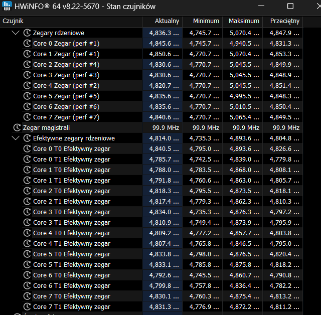 @PiPoLiNiO rozumiem że nie robiłeś limitów mocy? tzn leci na def? Możesz wstawić screen z maks zegarami (hwinfo)podczas przelotu tej Aida? Nie musi być długo z 1-2 minutki. Tak z ciekawości. Czyli odpalasz aida i test uruchamiasz, potem hwinfo odpal i będzie rejestrował max zegary testu. Jak coś to ikonka zegaru na dole hwinfo powoduje wyczyszczenie min max U mnie leci obecnie i mam takie na 9800x3d