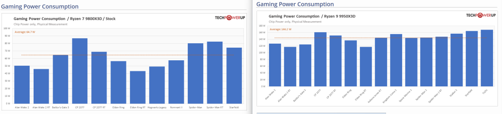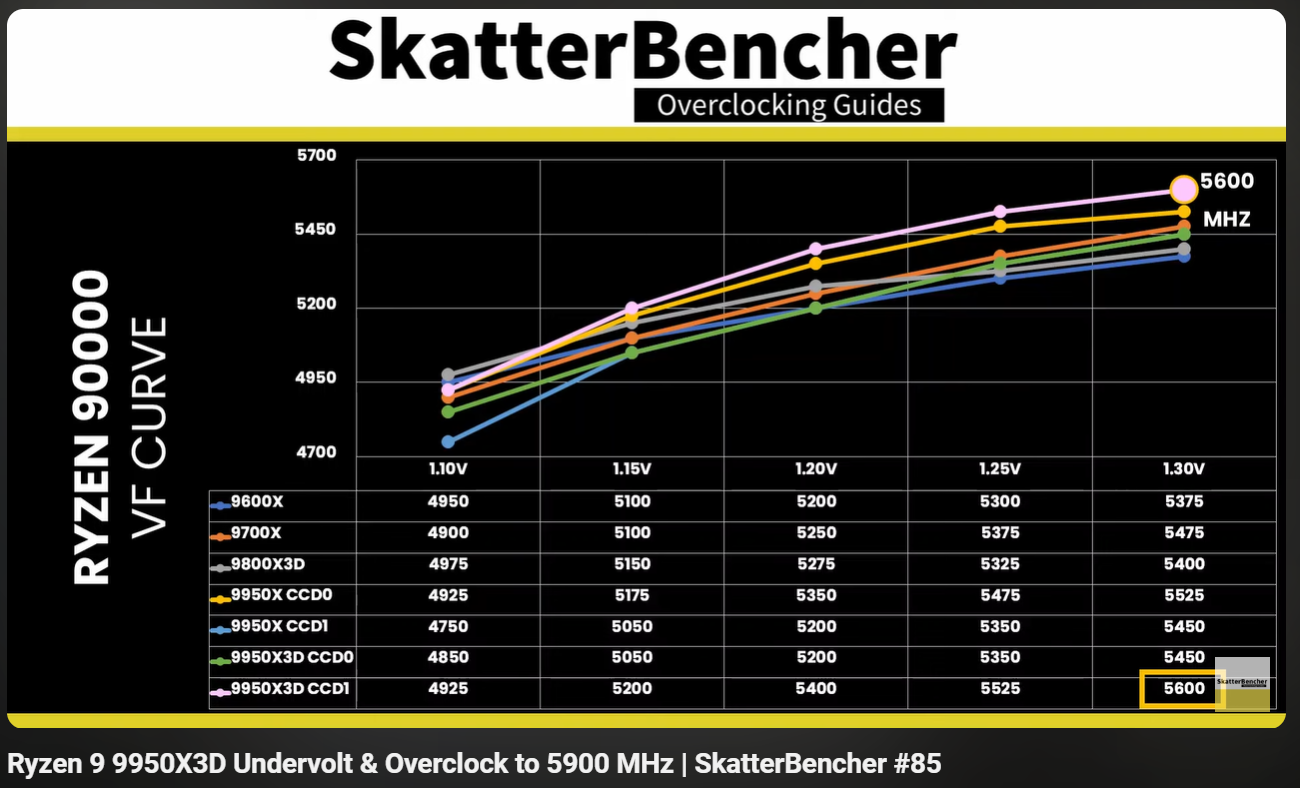 a te extra +200 w 9950x3d jest kosztem wyższego napięcia niż 9800x3d?
