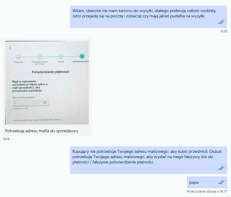 @Tankietka OLX się teraz wycwanił, że w niektórych kategoriach nie ma możliwości wyłączenia przesyłki Ale z tego co pamiętam, sprzedający musi potwierdzić sprzedaż jakby ktoś kupił z przesyłką, a ja tego na przykład nie chce. -
