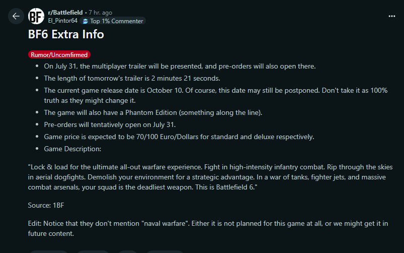 I znajac EA/Dice (teraz to juz nie tylko dice) jest tam sporo rzeczy ktore moga spierdzielic totalnie. Jutro dowiemy sie troche wiecej, jesli open beta ma jedna date i bedzie tylko dostepna przy robieniu pre-orderu to juz jest strzal w stope i jak to teraz jest bardzo modne, red flag na calego. Chyba ze zrobia to w stylu coda, najpierw "open beta" dla tych co zrobili pre-order, jeszcze moze na dokladke dzielac to na platformy a dopiero tydzien pozniej "open" dla wszystkich. To co bedzie w becie, bardzo prawdopodobne bedzie na premiere bo historia lubi sie powtarzac, a czas miedzy beta a premiera jest bardzo krotki to nie beda w stanie tego wszystkiego naprawic. Tak wiem, beta to moze byc starszy build, na premiere bedzie juz poprawiony. Niestety nie zyjemy w utopi i takie rzeczy sie nie dzieja tym bardziej pod bandera EA Bardziej bedziemy mieli open alpha, na premiere bedzie beta a rok po premierze bedzie status gold Nie nastawiam sie pozytywnie czy neutralnie, bardziej negatywnie na to jak to wyjdzie, mimo ze z ostatnich bf-ow najlepiej mi sie gralo ostatnio w V. Movment, strzelanie byl jak dla mnie perfekcyjny, plynnosc przy poruszaniu byla bardzo satysfakcjonujaca. Mapy i ich wyglad byl swietny, brakowalo oczywiscie rozszerzeina konfiktu o bardzie znane rejony czy nacje, 2042 byl meh. Wiec jak wydzie (oby kutwa oby) dobry bf to bedzie to pozytywne zaskoczenie, niz totalne rozczarowanie jakie mielismy przy 2042.