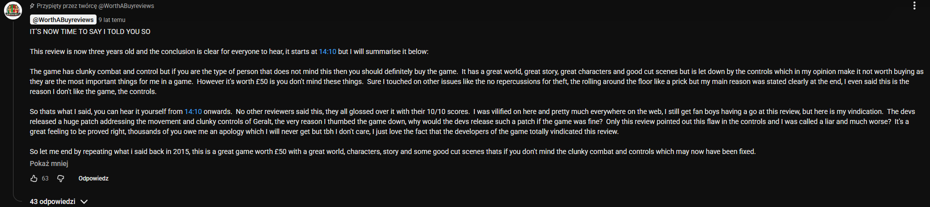 Ciezko sie nie zgodzić, podobne odczucia mialem. Po trailerach liczylem na dynamiczna walke ale tutaj jest ona jakas taka dziwna. Wisienka na torcie jwst nagranie tysiąca klawiszy, dziwnych kombinacji a potem brak możliwości zmiany biedować - halo mamy 2026. Jedyne co w grze imponuje to warstwa artystyczna połączona z draw distance. To taki jej chyba jedyny prawdziwy atut Nie, gra jest na każdej płaszczyźnie niedorobiona. Grałem w assasyny i tam płynność walki i sam movement bym znacznie lepszy. Ktoś kto wymyślił to "skaknie" w crimson desert to powinien iśc do łagru