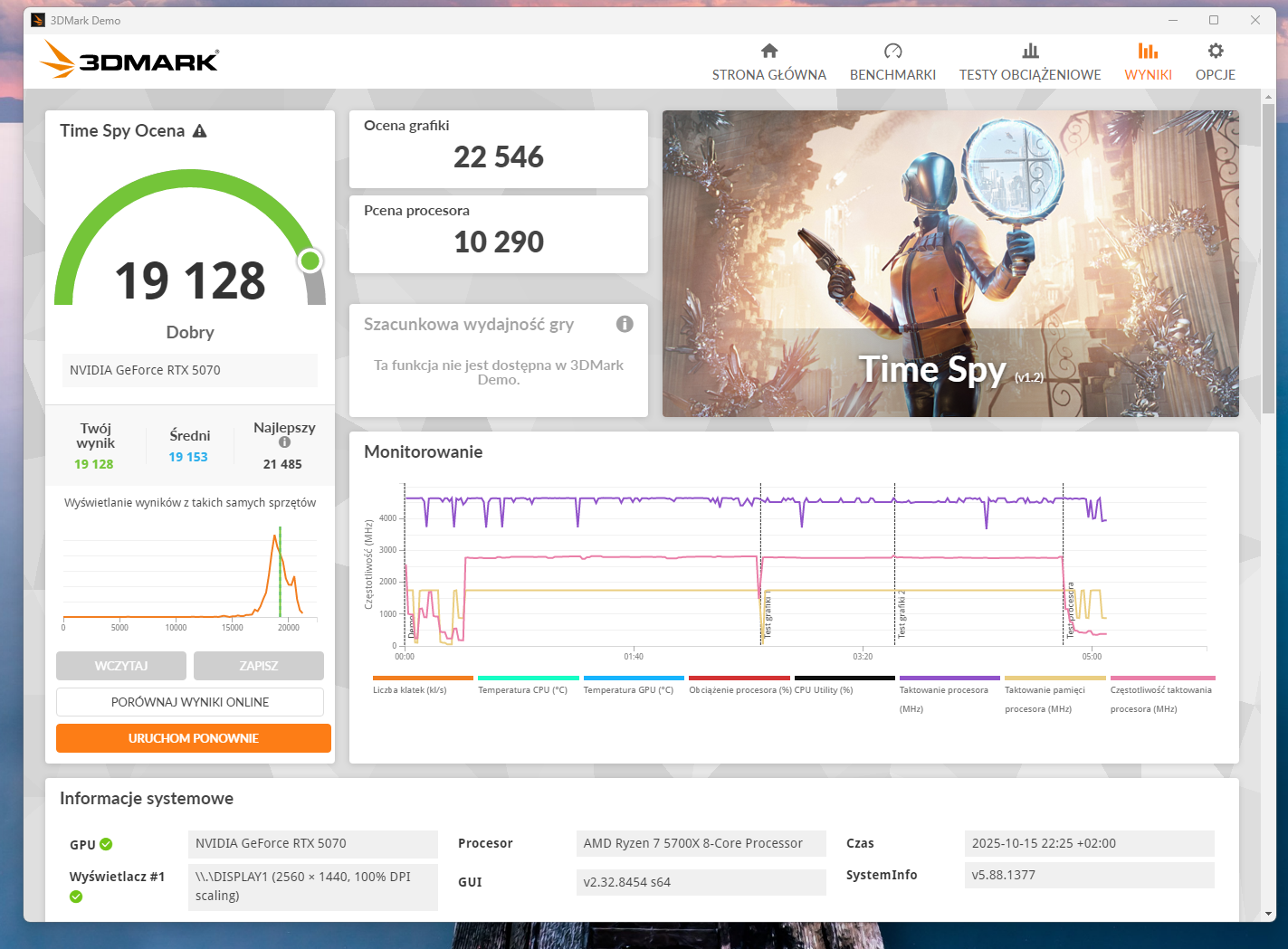 7. Ja to nawet rozważam zmiane na AM5 i sprzedaz tego co mam jeżeli okaze sie, ze Ramy albo Procek nie daja rady Przede wszystki chce wykluczyć, że to karta graficzna, połączyłem dzisiaj HW infgo z MSI afterburnerem, wieczorem odpale znowu Batka i bede monitorował i wrzuce tutaj, tutaj ejszcze wrzucam z nowego Benchmarka z 3d marka.