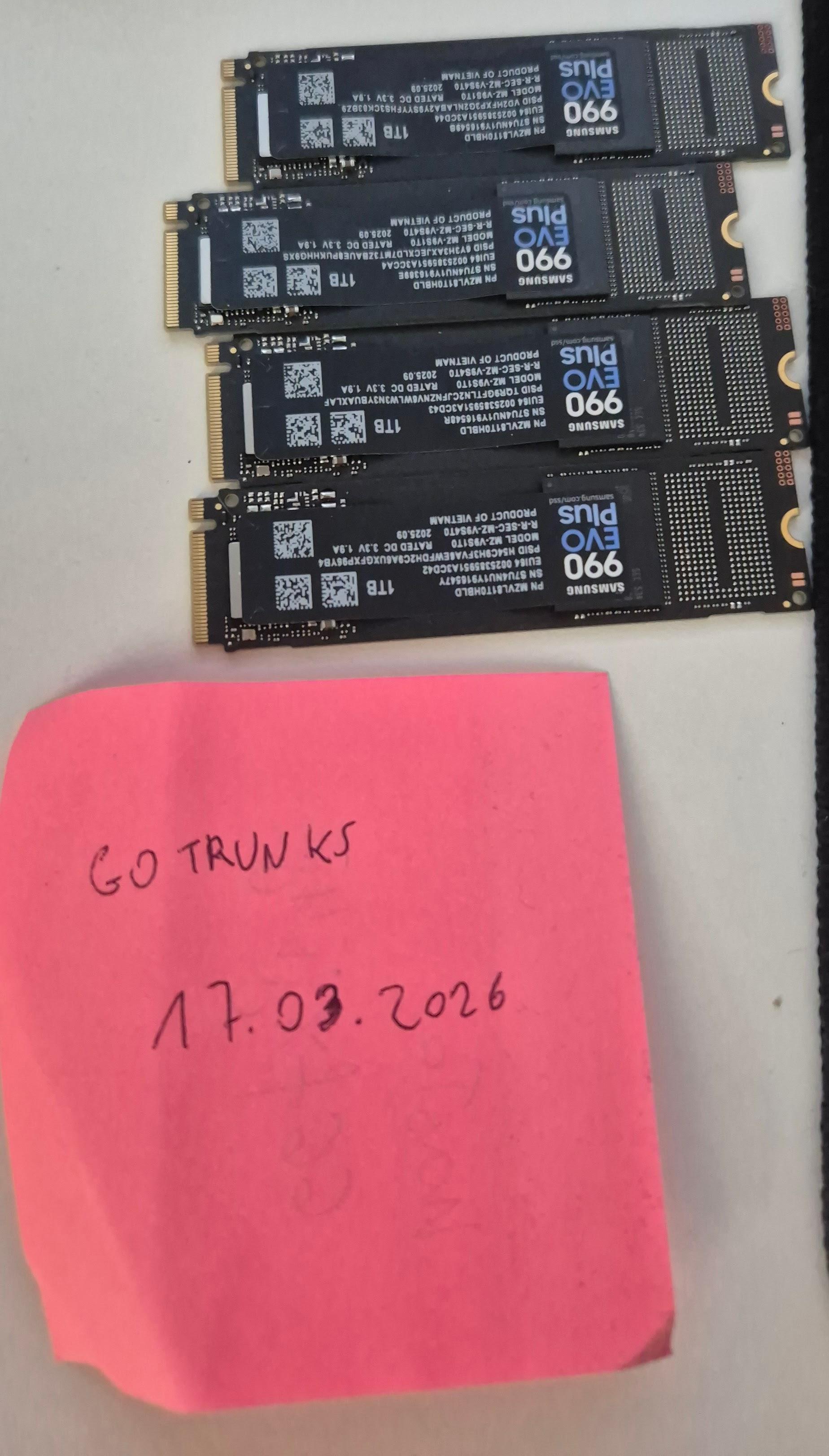 Dyski w zasadzie nowe, kupione na przełomie grudnia/stycznia. mają 0 lub kilku godzinne przebiegie. Mam 4 sztuki. Cena 500zł za 1 sztukę. https://www.olx.pl/d/oferta/samsung-990-evo-plus-1-tb-dysk-nvme-pcie-4-0-pcie-5-0-CID99-ID19O05N.html?bs=olx_pro_listing