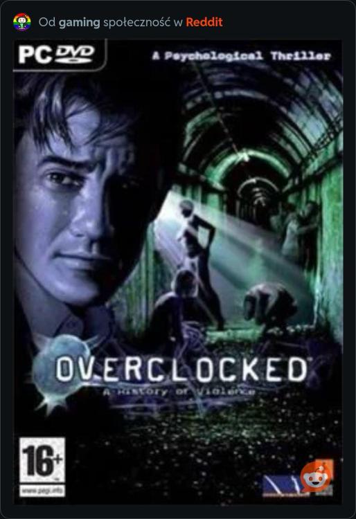 Overclocked: Historia o przemocy Od 13 dni pozycja pełnoletnia. Wspominam tę grę do dziś ze względu na: - Ciekawą fabułę - Kawał klimatu - Rzadko poruszany w grach wątek przemocy psychicznej Pamiętam, że nie ukończyłem tej gry, ale robiła na mnie duże wrażenie swoim klimatem i losami głównego bohatera. -