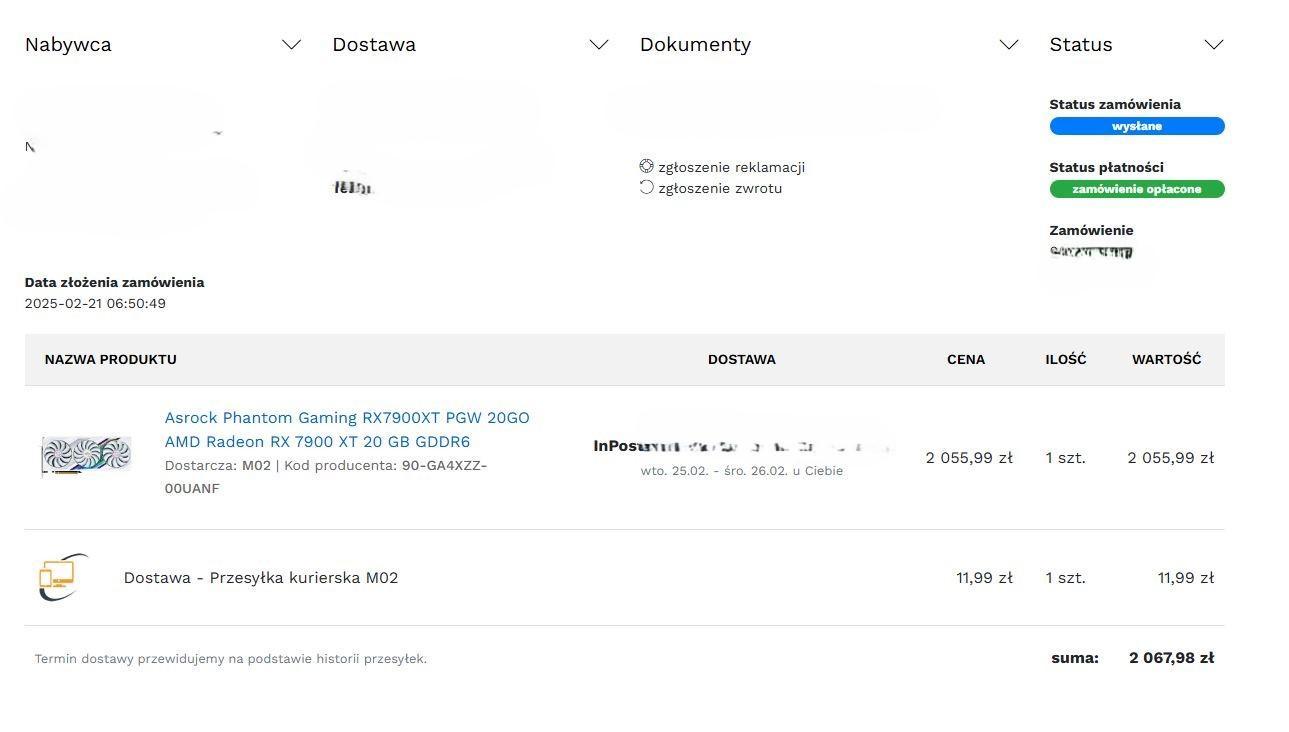Nie ma to jak zapach nowej karty przed obiadem :E. Dotarła 7900xt, chyba funkiel. Folia antystatyczna pięknie zalakowana :). Więc będzie czekane aż ceny spadną nowszych kart :). Czyli można przyjąć, że kupiłem 9070 za niecałe 2100zl