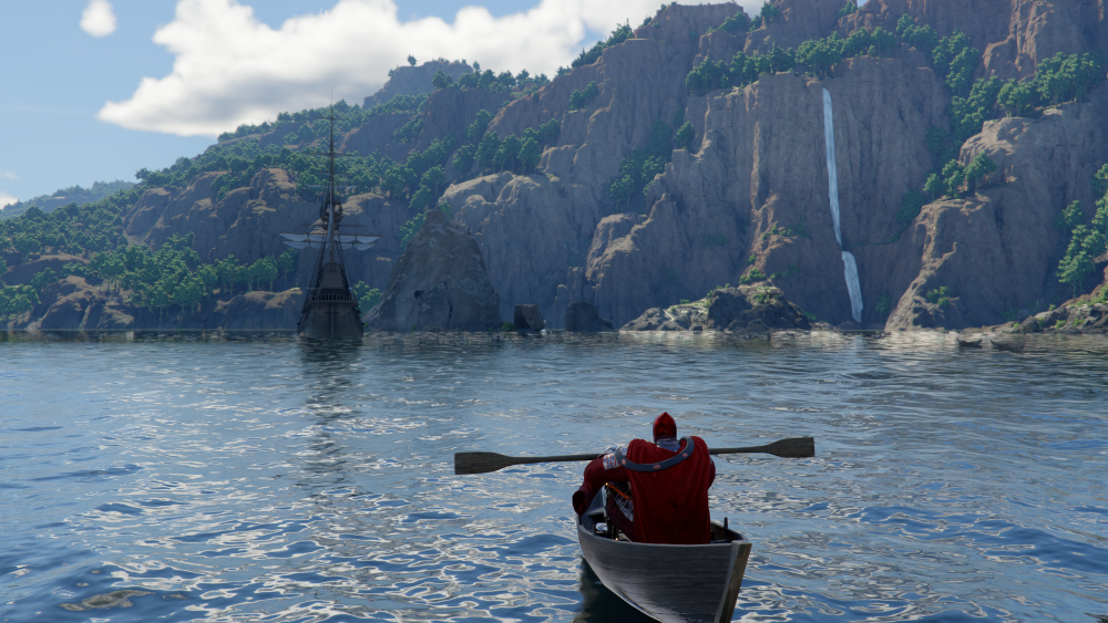 Jak to nie ma? Słabo szukacie panowie Screen z mojej gry. Normalnie da się pływać łódkami. I można dostać się do tego statku w zatoce. Jest tam kapelusz króla piratów do zebrania.