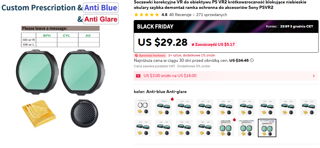 hmm, ja rzadko ostatnio odpalałem PSVR2 na PC, ale 9800x3d/4090 to chodziło jak masełko soczewki zamówiłem na alie, takie z recepty od odkulisty: wada, cylinder oś - must have dla okularników a i jak zdarza mi się grać powyżej godziny to jest taka opaska podtrzymująca przez szczyt głowy - niestety trzeba ustawić ją lekko na ukos, ale odciąża głowę i stabilizuje gogle - więc ostrość masz stabilną