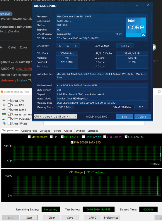 Wiem, że do 5ghz potrzebuje 1.25v to mam na stałe 1.25v a nie w idlu 1.3 i zrzucam z 1.3v do 1.25 pod obciążeniem, poniżej picreal