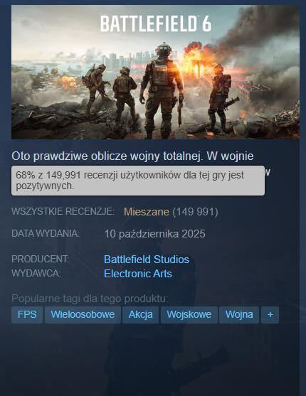 Nie ma się co dziwić jak idzie fala negatywnych opinii od azjatów i rusków, bo im battlefield zjada dupą pubg, cs i codzika. W Polsce oraz niemczech w większości pozytywne. I taki jest tego finał: