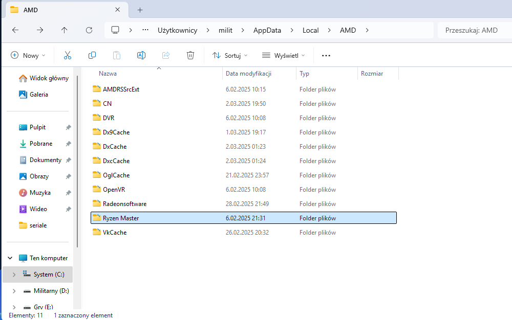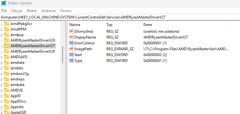 3. @cyborg i @Reddzik Sprobujcie po instalacji wykasowac ten folder i ponownie zainstalujcie Ryzen Majster Jeśli nadal nie naprawiliście tego problemu, to co zadziałało u mnie, to usunięcie tego pliku i ponowne uruchomienie komputera. W edytorze rejestru usuń ten plik: Computer\HKEY_LOCAL_MACHINE|SYSTEM\Cur rentControlSet\Services\AMDRyzenMasterDriver V27