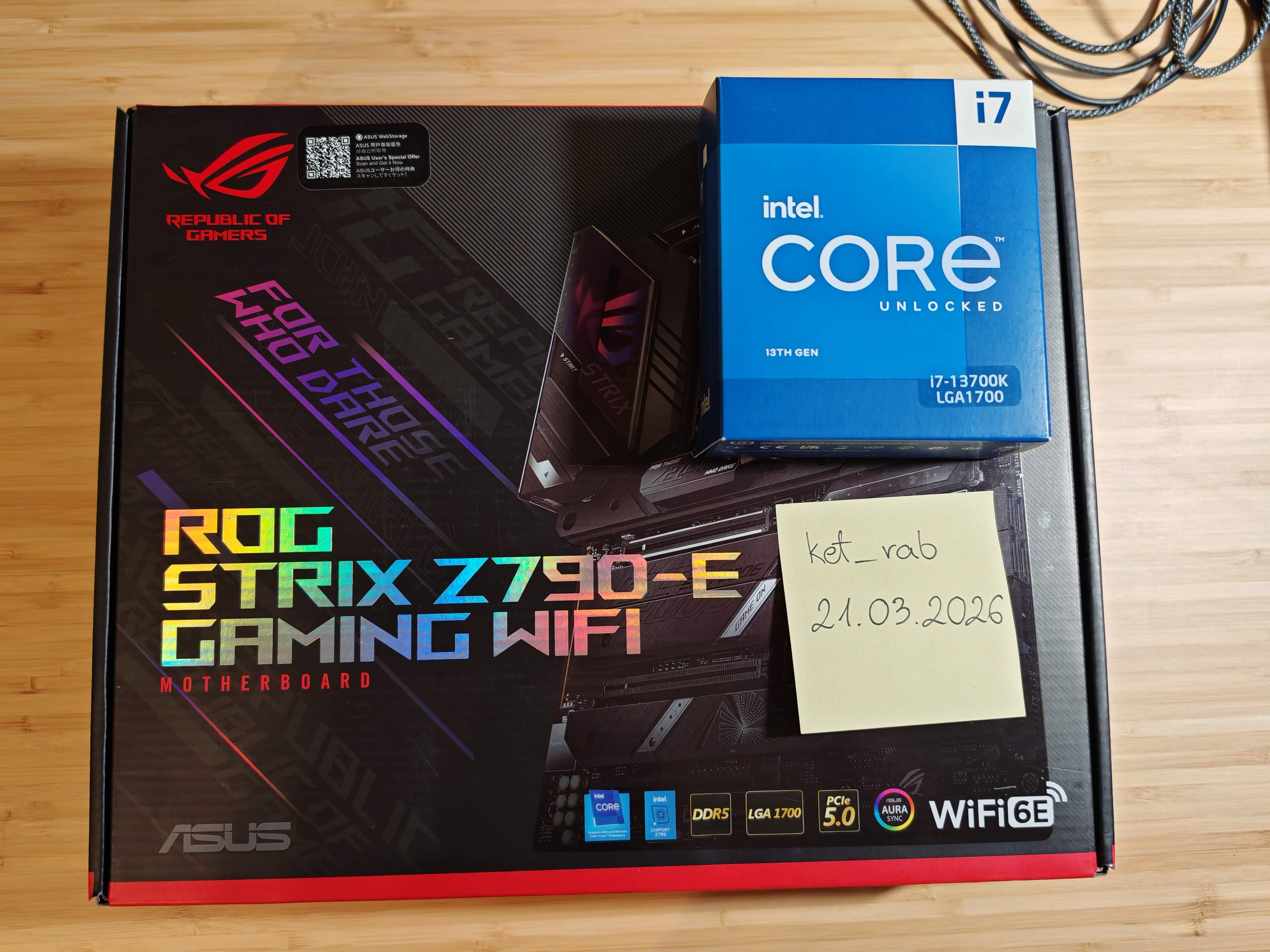 W zestawie dodatkowa ramka oraz Kryosheet na CPU. W zestawie dokument zakupu CPU i MOBO ( morele ) - 13700k - gwarancja producenta do 26.01.2028. - MOBO - Asus Z790-E Gaming Wifi już po gwarancji. Pełny zestaw z dodatkami i anteną wifi. Na ss widać max 208W przy 10min R23. Od nowości bezproblemowy zestaw - jestem pierwszym właścicielem. Zestaw pracował z 2x24 7800. Możliwość odbioru osobistego ( 05-555 ) Cena: 1799 zł Link: OLX 13700k + Asus Z790-E Gaming