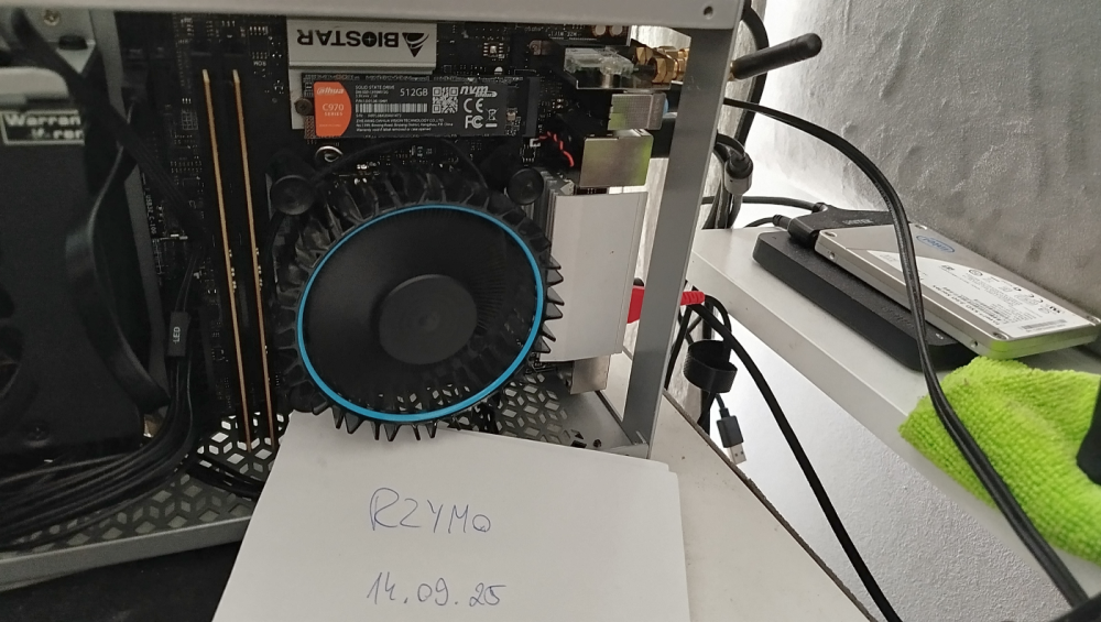 Sprzedam zestaw procesor + płyta + pamięć: 1) Intel i5-13400 (box): - 10 rdzeni / 16 wątków (6P + 4E) - zintegrowana grafika (UHD 730) - obecnie ustawiony PL1=PL2=65W + offset -40mV + niskie LLC (~15000 pkt w Cinebenchu R23) - przy powyższym ustawieniu box cooler daje radę (w grach jest cicho, w zapętlonym Cinebenchu robi się słyszalny) - faktura elektroniczna z sierpnia '25 (X-Kom) 2) mała płyta Biostar B760NH-E: - obsługa PCIe 5.0 (grafika) oraz 4.0 (dysk) - sensowny kodek dźwiękowy Realtek ALC 1220 - karta wifi Intel AC9560 (2x2 / 1733 Mbps) + po kabelku Realtek 2.5G - maskownica i antenki wifi w komplecie - wrzuciłem najnowszy bios - faktura elektroniczna z lipca '24 (Euronet / OleOle) 3) pamięci DDR5-5600: - moduły no-name, czarne, bez radiatorów - 2x 16GB - fabryka 5600 46-46-46-90-136-... @ 1.1V (klasyczne JEDEC) - obecnie 6200 40-48-48-64-112-... @ 1.25V Moja propozycja za całość: 850zł + wysyłka. (sorry za jakość fotki, ze sprzętu korzystam do końca weekendu)