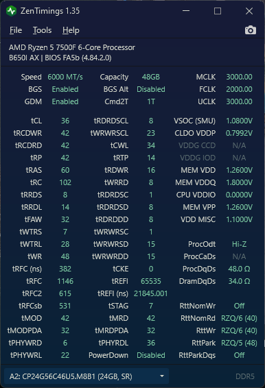 mam: - 2x24GB DDR5 Crucial Pro - profile XMP = EXPO = JEDEC - niskie moduły z czarnymi radiatorami jeden moduł 5600 46-46-46-90-135-.. @ 1.1 V drugi moduł 6000 48-48-48-96-144-.. @ 1.1 V obecnie 6000 36-42-42-60-102-.., tWR 48, tREFI 65k @ 1.26V (na Intelu byłem w stanie ustawić wyższy zegar, przy tych samych timingach) moduły na gwarancji, kwoty z faktur to ok. 250zł / moduł zamienię się na: 48GB jest mi całkowicie zbędne, z chęcią przygarnę nieco szybsze 2x16GB, jedyny warunek to niskie moduły (czyli np. Patriot Venom odpadają) - mogą być podobne Cruciale, Corsair Vengeance, Kingston Fury, itp.