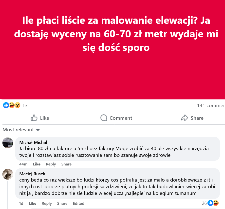 Mi tu chodzi bardziej o to, że jak ktoś pyta ile kosztuje usługa prawnicza na internecie to nie ma wysrywu prawników mówiących mu żeby sobie sam poszedł do sądu jak za drogo. Natomiast budowlańcy chyba tylko w tym są dobrzy.
