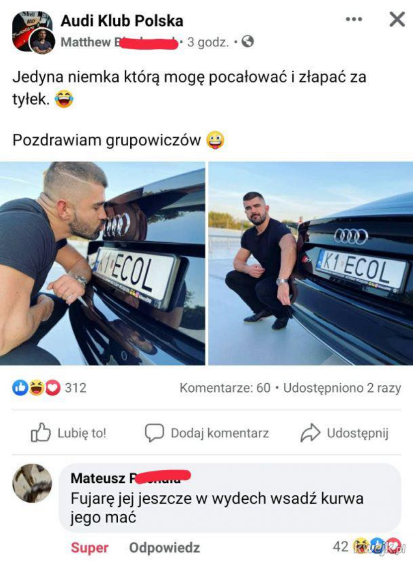Ależ to są kur*%. Nowe przepisy dowalą wszystkim. A Banany dalej będą jeździć z pięcioma zakazami 300 kmh w mieście i chwalić się tym na internecie podpisując się własnym imieniem i nazwiskiem. Ale policja będzie miała w dupie ich szukanie, a sądy ich ukaranie. https://auto.dziennik.pl/aktualnosci/artykuly/10568075,trzy-wykroczenia-i-tracisz-prawo-jazdy-na-zawsze-minister-to-dopiero-poczatek.html