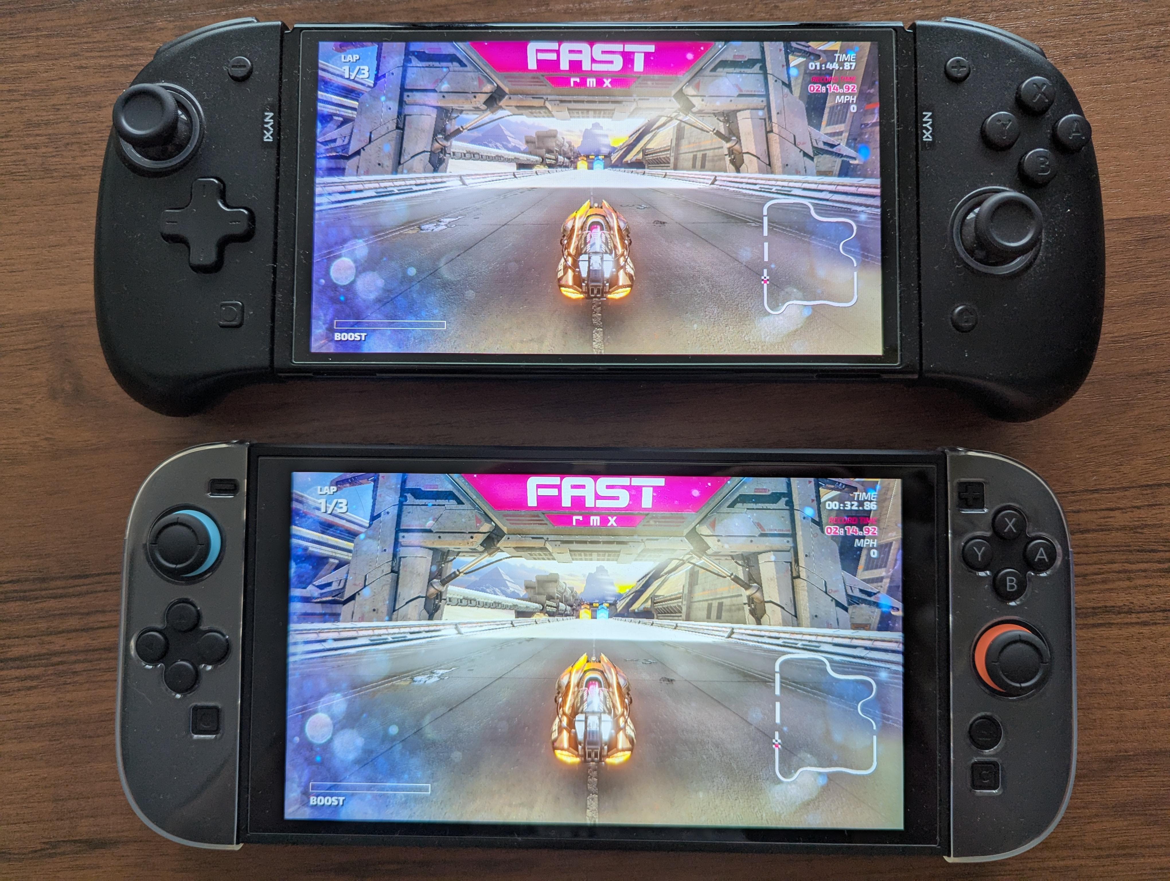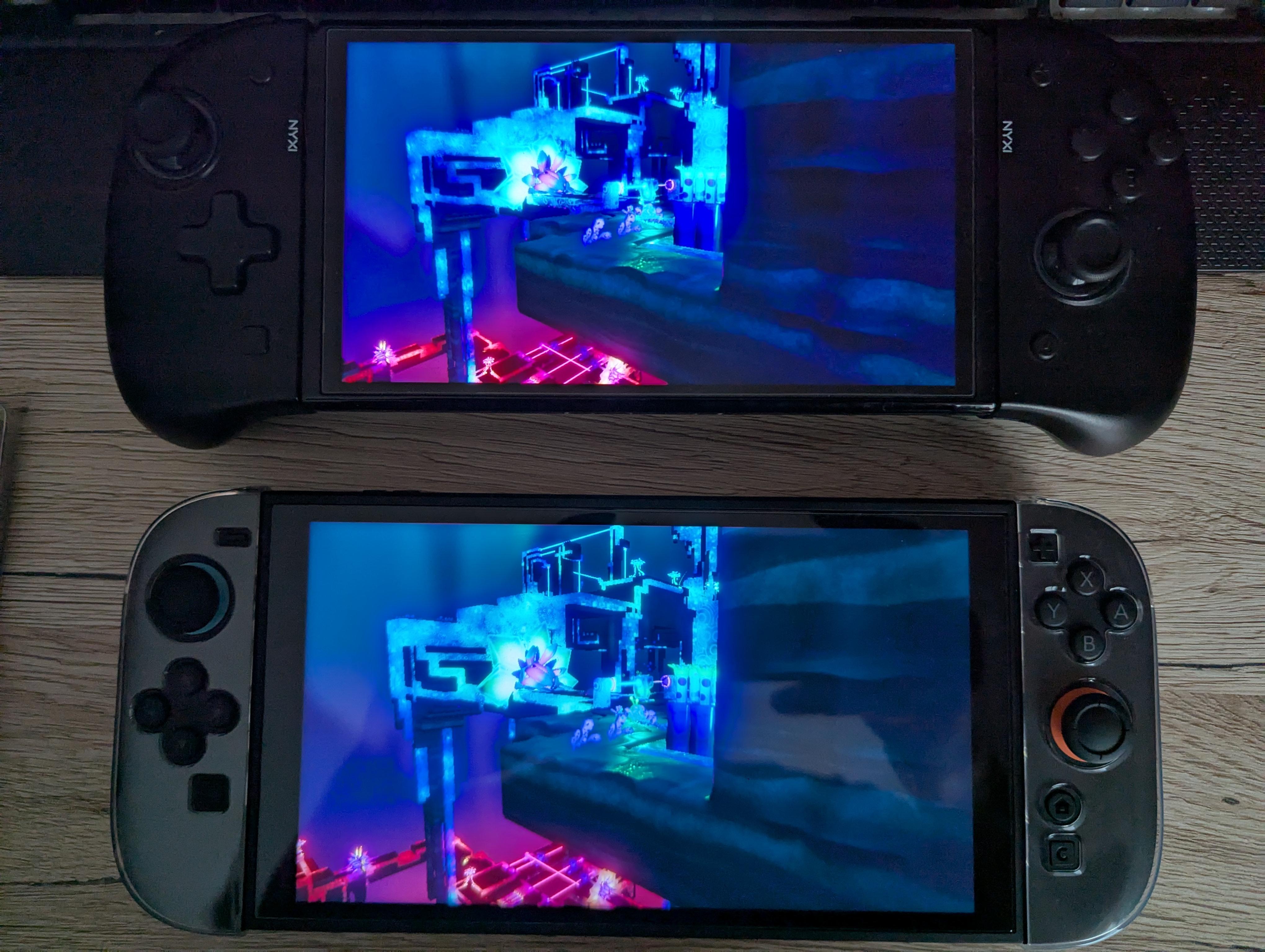 Pierwszego pstryka z oledem na razie się nie pozbywam, więc będę testował jak się prezentuje względem tego ips. Oled w switchu chyba nie jest najwyższych lotów i ma zielony zafarb. Pamiętam gdy pierwszego dnia mocno mnie to irytowało i natężenie tego zjawiska zależało w pewnej mierze od ustawionej jasności. Akurat grałem wtedy w Limbo i nie wyglądało to zbyt pięknie. Nawet w jasnych grach jak fast RMX niektóre kontury łapały zielony odcień.