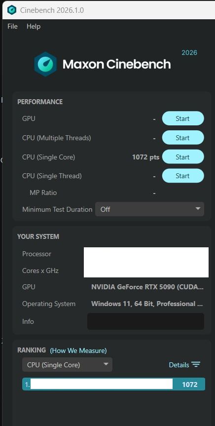 Właśnie testowałem nowego Cinebench 2026: R5 9600X (ST ~5.4 GHz) RAM 5600MT 2x16GB(32GB) Single Thread: 525p Single Core (SMT): 719p (+37%)! AMD podkreśla że SMT w Zen4 i Zen5 zajmuje 5% logiki(tranzystorów) rdzenia U9 285K (ST ~5.7 GHz) Single Thread: 602p (Zen5 SMT +19%!)(LionCove ST +14.6% względem Zen5 ST(SMT OFF)) W CB 26 rdzeń Zen5 ma o ponad 20% wyższy IPC niż LionCove