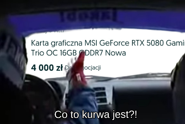 Pamiętaj, że wydając 6 czy 7 tysięcy za 5080, czyli na grafikę typowo do grania, to nie jesteś jakim trzeźwo myślącym buntownikiem przeciw kurtasowi (bo nie kupiłeś topki za 14k), tylko zwykłym uzależnionym od cyferek i pcmr freakiem jak ja i większość tutaj Pogódź się z tym, psychika ci podziękuje . Przecież kupiłeś za o wiele za dużą kasę zabawkę, która szybko traci na wartości. Ale jak potrafisz się trochę wstrzymać ciułając w międzyczasie cebuliony, bo też jak ja nie zarabiasz kilkadziesiąt tysia/miesiąc i poczekasz z pół roku, najlepiej do lata, to kupisz se topkę za 60% jej premierowej ceny mając nadzieję, że rynek nie dostanie w międzyczasie jakiejś sraki z AI, krypto czy innym gównem.