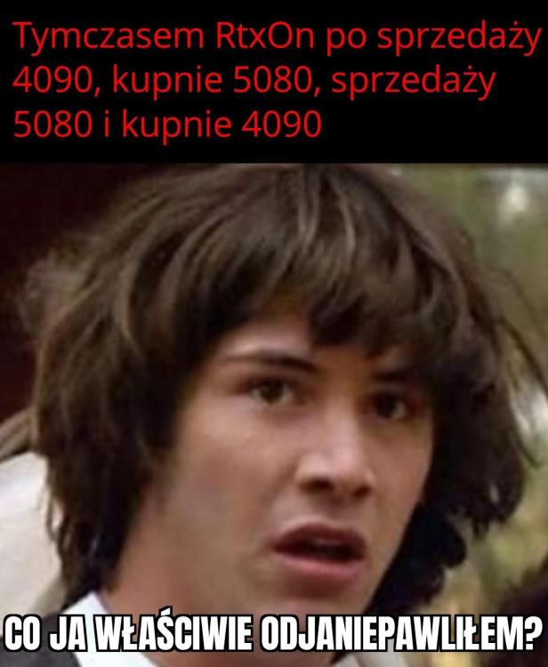 Pamiętacie jak na krótko przed premierą i zaraz po slajdzie kurtasa "5070 - performance 4090", debile sprzedawali 4090 po 5k a nawet może i mniej? A jakiś gość z tego forum pisał, że niedługo będą po 3,5 tysia? Kto znajdzie to złoto płacę pucharem 🏆 YouCut_20250210_161347213.mp4