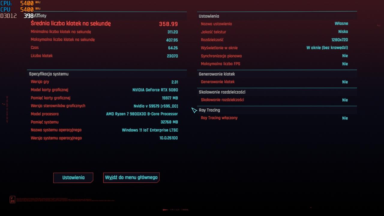 Nie zyskałem nic, bo w SoTR, AW, RE:Requiem nic mi to nie dało, w bf6 nic mi to nie dało (a tu gram wszystko low 1440p), w grze cp2077 nic mi to nie dało (na ustawieniach, w których gram >max+rt max+ hdr/1440p), tylko benchmark cp2077 pokazuje więcej i to o ponad 100fps na minimalnym fps i dużo więcej na średnim i maksymalnym dla benchmarka cp2077, czy jakiś nierealnych testów 720p low, nikt normalny systemu nie będzie zmieniał, jedyne co zrobię to zainstaluję na czysto windowsa, którego mam oryginalnie i zrobię mu debloat -