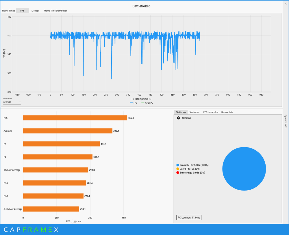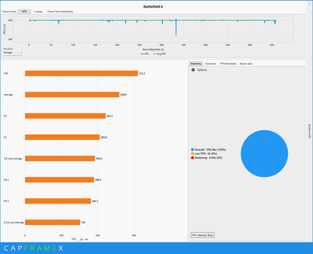 No raczej tak. Monitory 500hz nie są po to, żebyś miał sprzęt, który musi wyciągać 500fps, a raczej po to, żebyś miał większe pole manewru. Tak jak pisałem, mój komp w bf6 bez fg 191fps 1% low, średni, ale taki do utrzymania praktycznie stałego bez skoków 260fps : ale na monitorze poprzednim - 240hz , musiałem ustalać limit fps na 225fps, bo to jest bezpieczny zakres, żeby nie wychodził poza 240hz , bo wtedy będzie rwanie obrazu. Na tamtym monitorze korzystanie z fg nic nie dawało, bo już musiałem fps ograniczać przez "tylko" 240hz, a z fg powodowało tylko generowanie obrazu ze znacznie niższego fps bazowego. Teraz na monitorze 500hz, mogę z FG dać capa na 400fps (mam bezpieczny zakres i jednocześnie utrzymam tyle bez większych skoków, a 1% low na poziomie 290fps) tu już trochę fps lata (375-403fps), ale to nie jest tragiczne, to małe skoki przy takiej średniej, bardziej spada 1% low, bo to 100fps mniej od średniego, ale to już takie osiągi, że te ~300fps 1% low nie są złe to dają monitory o wysokim odświeżaniu, można wyciągnąć więcej, bo jest zapas odświeżania, mimo że sprzęt tyle nie pociągnie
