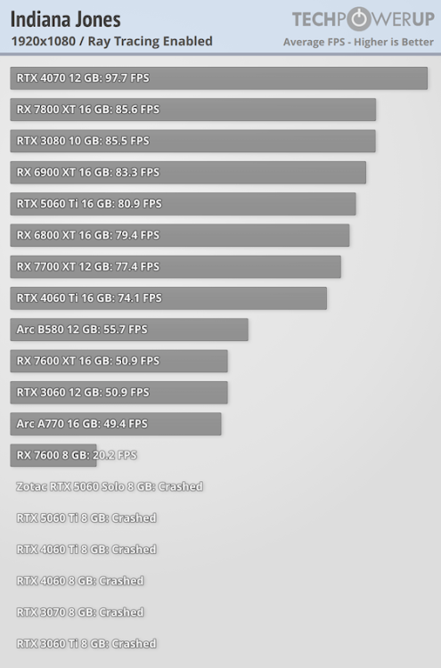 RX 9060XT Pierwsze wyniki syntetycznych benchmarków. https://wccftech.com/amd-radeon-rx-9060-xt-16-gb-gpu-benchmarks-leak-slower-rx-7700-xt-vulkan-opencl/ OpenCL 68.7% Wyniku RX 9070XT Vulkan 68.5% Wyniku RX 9070XT Ze względu na tę samą generację możemy zaobserwować podobne skalowanie w grach, czyli będzie ona wyższa niż RX 7700 XT, a nawet może nawet dobić do RX 6800 XT. Edit: Porównanie tej metody w starszej gen 7600xt w wersji syntetycznej ma 68-70% wydajności 7700xt w grach, 1440P ma 66%, głównie ze względu na x8 PCIE. a w 1080P 70,5% Wyniki wydajności w grach z Recenzji Techpower