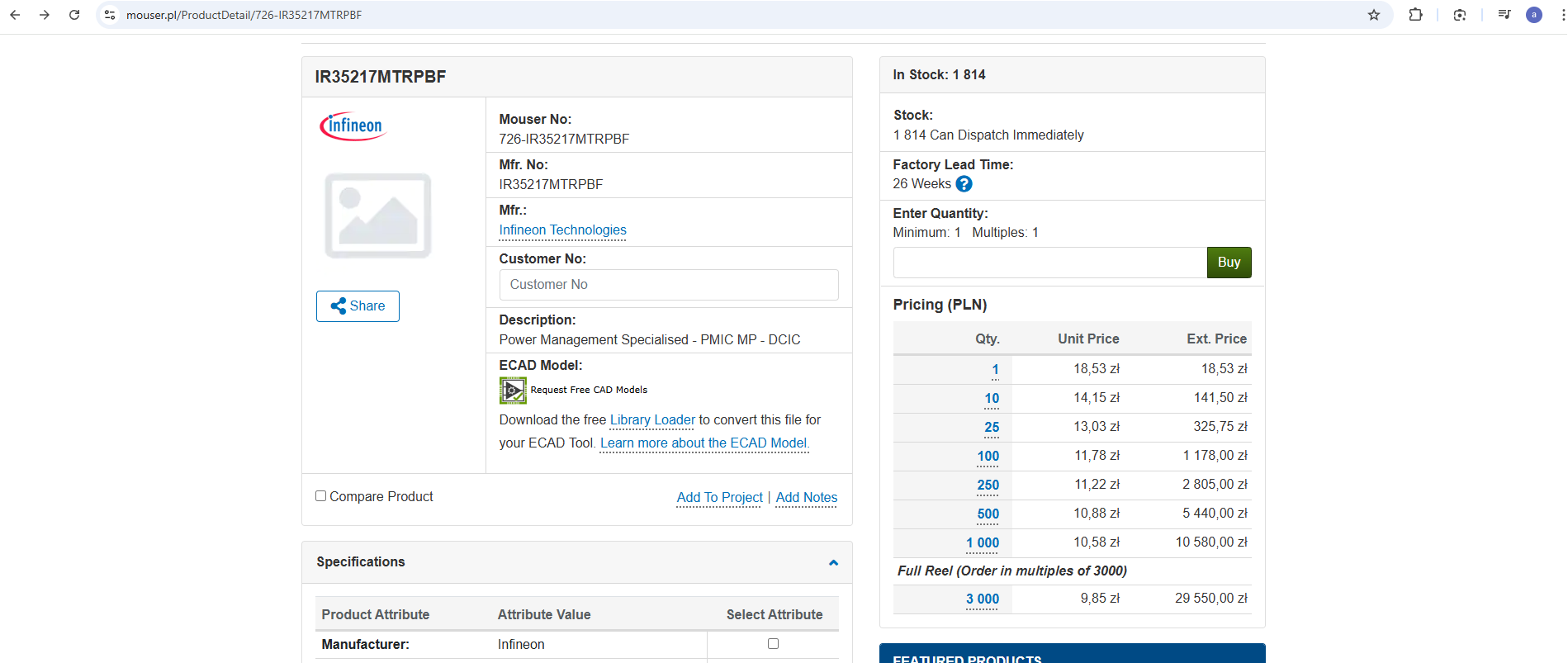 Sprawdzone źródło mouser, okres oczekiwania 26 tygodni Jednego układu nie warto brać bo za wysyłkę liczą sobie sporo.