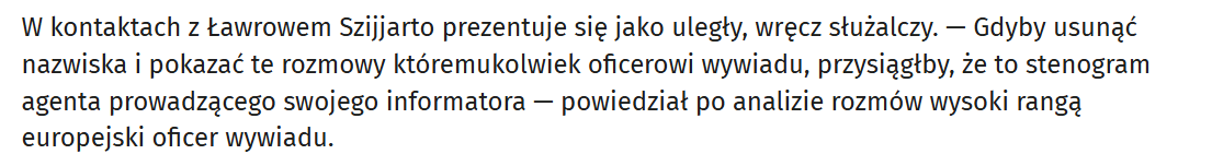 To są psy, nie ludzie. Na kolanach. więcej smaczków tutaj: https://wiadomosci.onet.pl/swiat/czlowiek-orbana-zawsze-do-dyspozycji-rosjan-znamy-tresc-rozmow/rmmwmgl Za 2 tygodnie przekonamy się, na ile Europa będzie mogła ruszyć naprzód z porządkowaniem swojej wschodniej flanki. Ogólnie wybory na Węgrzech widzę raczej w czarnych barwach, Ordo Szuris i wszystkie największe prawicowe pokemony (Farage, Carlson) biorą się za obserwację wolnych wyborów na Węgrzech co następny to powiązany z Kremlem... https://wiadomosci.onet.pl/politico/ostatnia-prosta-ordo-iuris-angazuje-sie-w-kampanie-na-wegrzech-desperackie-ruchy/bdj9vk6 -