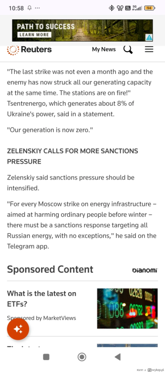 a mogę Ci zacytować po prostu jego sociale? Sam ocenisz na ile minął się z prawdą... wpis z końca lutego 2022 z nowszych cytatów - tutaj się je*nął tylko o dobrą dobę no i kąsek z listopada, gdzie jawną dezinformację rozpowszechniał (I DALEJ NIE SPROSTOWAŁ): tymczasem o tym samym pisał Reuters, gdzie jest mowa o 8 PROCENTACH całej mocy cieplnej Ukrainy Więcej nie chce mi się szukać -