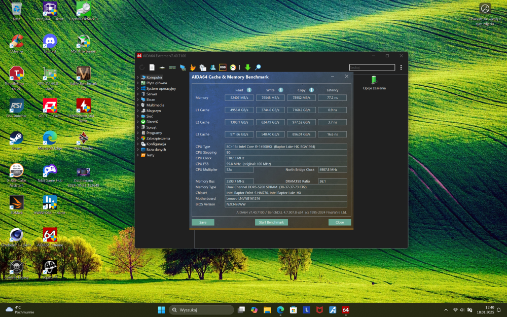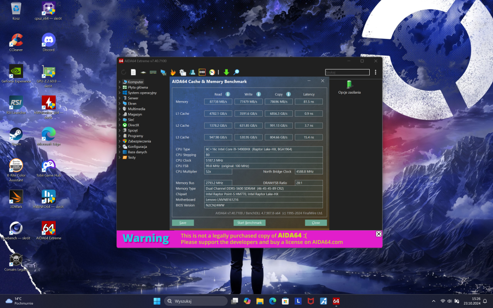 tutaj od góry defaultowe pamięci 5600mhz lenovo a niżej 5600 które poszły niestety na 5200mhz ale latency górą :) Teraz gdyby te kingstony 64gb 5600mhz przy cl 40 poszłyby na 5600mhz to za dobre wyniki by były, pozostają jednostronne ale tylko są do kupienia kingstony 2x16gb przy cl40 a star citizen lubi 64gb -