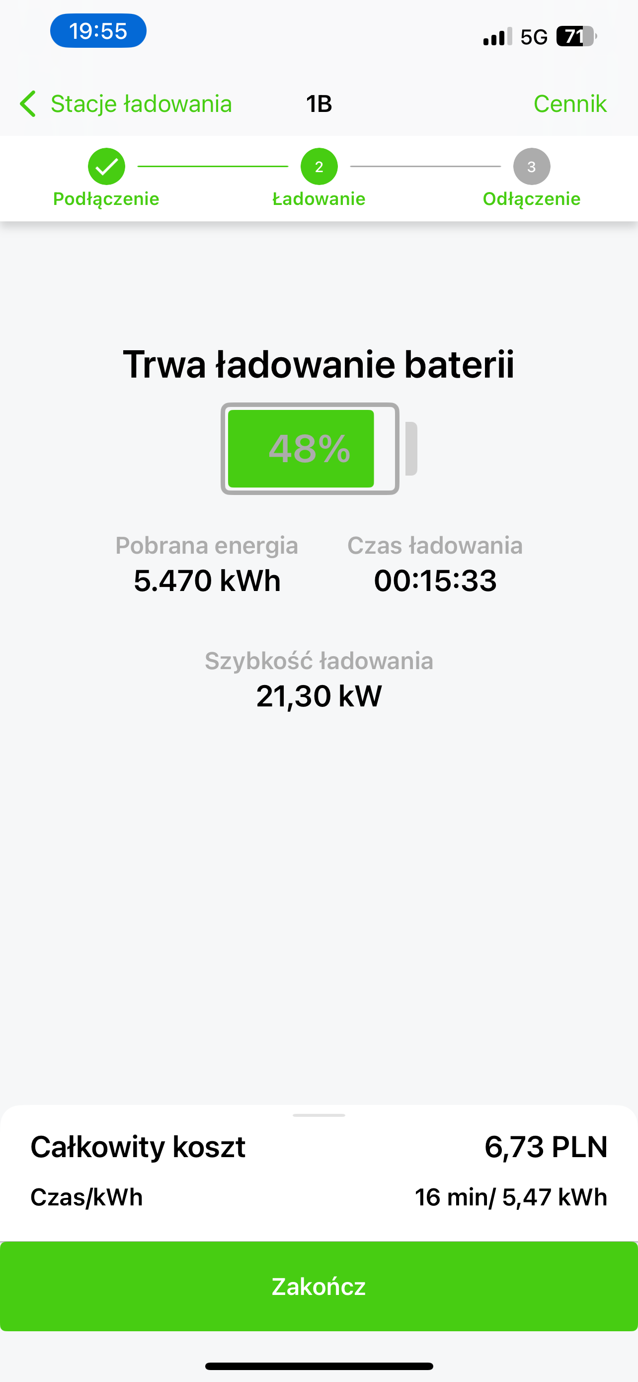 turbo cebula dzis w lublinie pod salonem skody ogolnodostepny CCS 30kW po 1,23zł za kwh (reanie ograniczony na 22kW) 15min - 7zł obok byłw sumie orlen i zaladowalbym w 3 min no ale za 20 edit dopiero teraz zobaczylem i te 1,23zl jest tylko w piatki (i niedziela 22-24) tak to ceny wyzsze