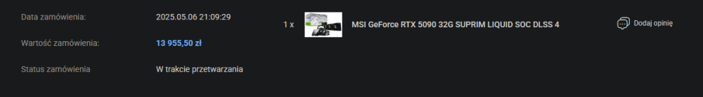 W końcu się doczekałem . Przepłacony 5090 Suprim. 13500zł brutto. Cewki niesłyszalne no i ta efektywność, I like it. Przy 0.82V max pobór 415W i wynik jak kiepskiej 5090 na stock W porównaniu do poprzedniej Suprim Liquid, ten powietrzny Suprim wciąga wodną wersję nosem. No, polowanie na grafy uważam za zakończone :)