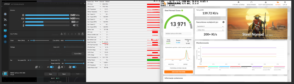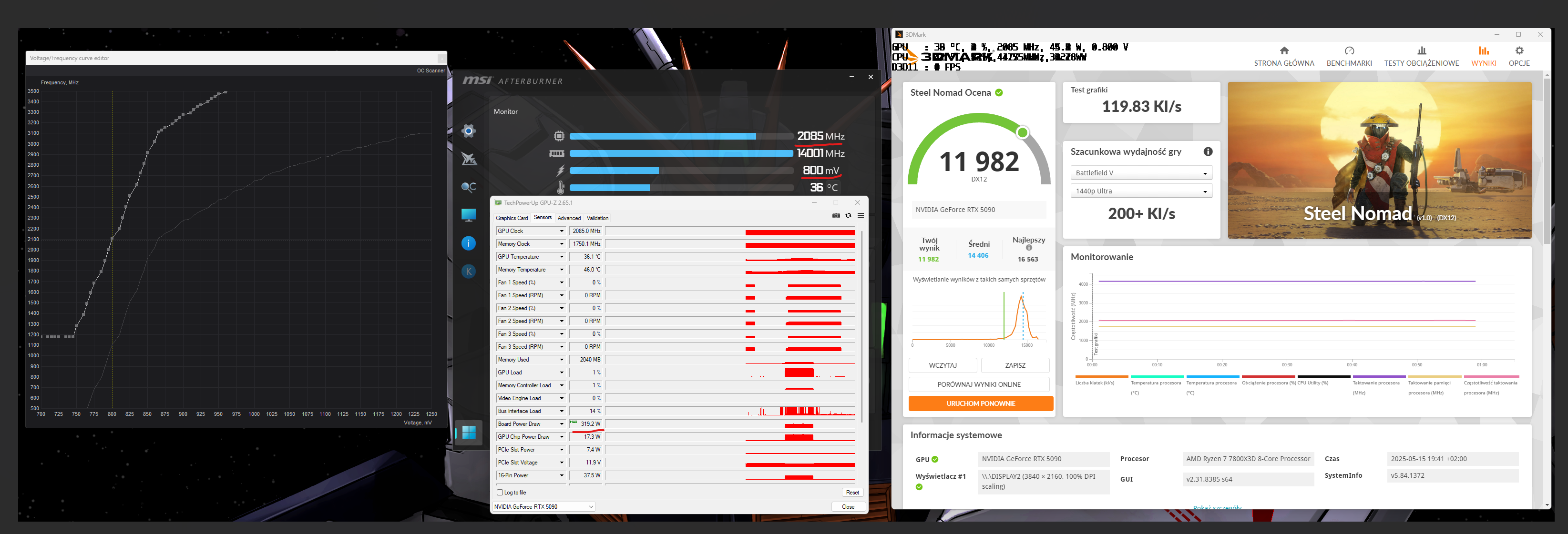 Jakie ustawienia w grze? Bo póki co, u mniej najbardziej grafę dojeżdża FF VII Rebirth se swapem na DLLS4, jak odpalę 4k DLAA, to klynkajta, wszystko inne może śmigać a tam crashe. Prawda, ta cudaczna krzywa sprawdza się tylko przy niższych napięciach, ten Suprim co mam, przy 0.89V wyciąga 15,2-15,3k punktów w SN, czyli praktycznie tyle samo co poprzedni 5090 Gaming OC od Gigabyte. Ale nic nie pobije sprawności energetycznej takiej 5090 przy 0,82V i 2,45Ghz na rdzeniu