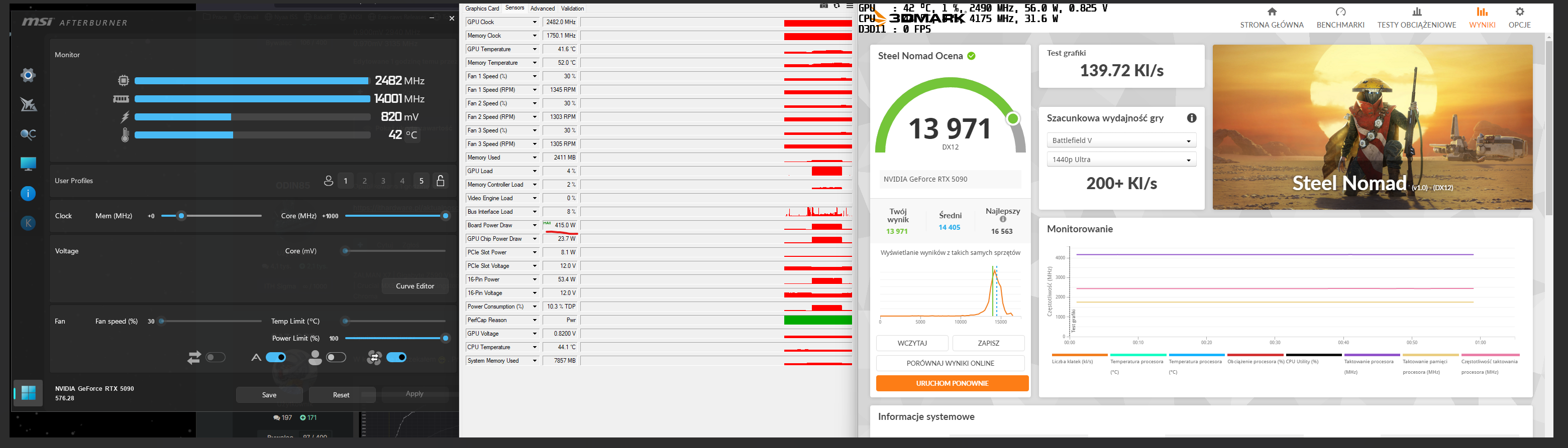 Spokojnie, dopiero pierwsze testy :D. Ale 14k punktów w SN, przy max 415W wygląda zachęcająco. Te niecałe 12k to było dla 0.8V i max 320W. A ja się odnosiłem do wyniku 14k punktów przy 0.82V, gdzie słabsze 5090 na stock tyle mają.