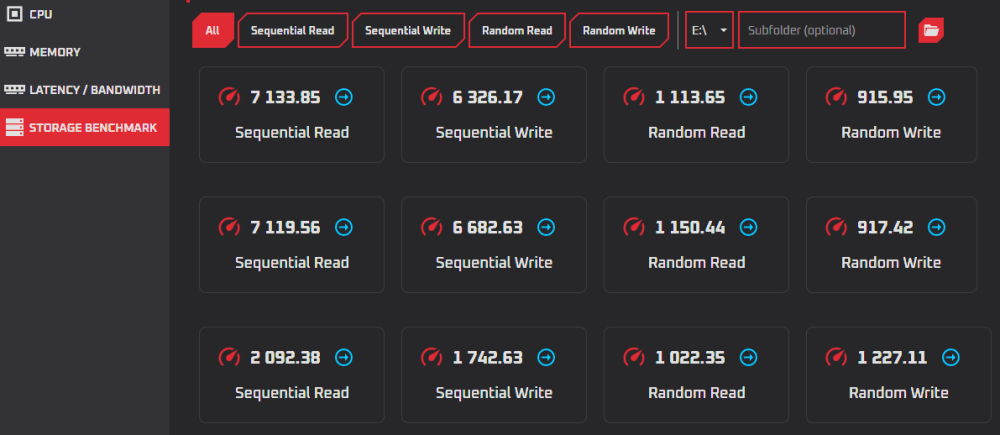 A porównywałeś już CB2077 czy coś się zmieniło ? Raczej nie powinno na tych ustawieniach co testowaliśmy Tak z ciekawości przetestowałem szybkości moich 3 dysków przed oc i po oc. Pierwszy test bez oc CPU , tyko xmp 3600MHz, drugi oc CPU i Ramy na 4000Mhz. 2 dyski PCIe4 jeden PCIe3 . Ładnie przyspieszyło