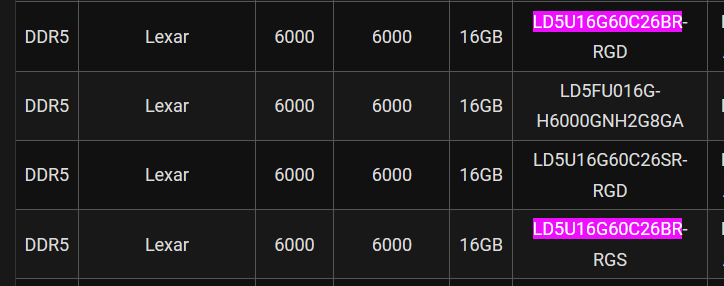 https://allegro.pl/oferta/lexar-ares-rgb-black-2-16gb-6000-ddr5-cl28-pamiec-ram-16998544873 Takie pamięci znalazłem. Niestety nie ma idealnie tych samych co na stronie asrocka dla mojej płyty i ogólnie te numery podane u nich to wyszukuje jako już niedostępne najczęściej.