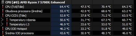 @Send1N Tak RAM i płyta została Ballistixy 2x8GB 3000MHz CL15. Teraz na 3000MHz żeby ci ss zrobić, system niby normalnie teraz wstał ale dalej dziwnie długo programy ładuje i co chwile przy kursorze ikone ładowania pokazuje. 3600Mhz CL16 jeszcze wczoraj się pobawiłem i w OCCT 2x30min SSE i AVX2 czysto + 2h sesja w BF6, bo jak sobie myślę o 2h/3h teście TM5 to mi się odechciewa Tu są ss z 3600MHz i profilu XMP 3000MHz. Dodałem jeszcze temp CPU i GPU po ponad 1h sesji w BF6. -