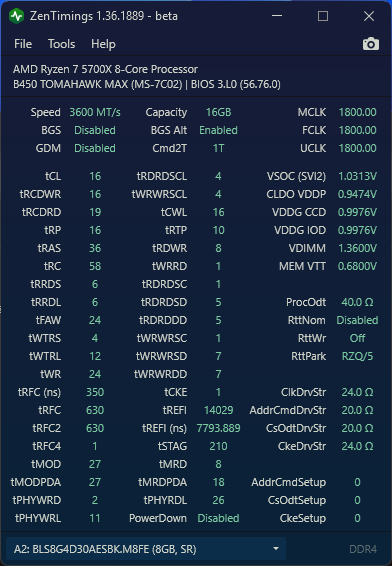 Na 3600Mhz mam ustawione 1.05V, na XMP to wszystkie ustawienia są Auto. -