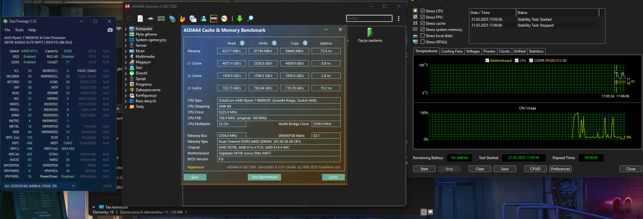 To może trochę potrwać bo musiałbym pogłówkować jak to zrobić. Używasz języka, który muszę szybko googlować aby nie wyjść na głupka. Oczywiście to nie Twoja wina bo podejrzewam, że używasz możliwe najprostszego w danej dziedzinie - problem jest we mnie, że jestem zbyt mało zaawansowany. Niemniej jednak człowiek nie z takich opresji wychodził! Kwestia po prostu czasu, piszę to abyś nie pomyślał, że olałem temat Wynik AIDA64 EXTREME: Update: Być może głupie pytanie ale istnieje możliwość, że problem generuje wersja windowsa 24h2 (Podobno znacznie gorzej w kwestii stabilności ona wypada przy 23h2) +zaimplementowane jakieś podejrzane aktywatory windowsa.