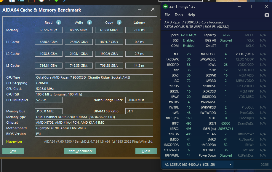 Aktulizacja tematu! VSOC: 1.25v VDDIO: Auto Zmieniło North Bridge Clock na 3200 - target speed 6000. Oczywiście zaraz do tego dojdę ale chyba idziemy w dobrym kierunku. Aktualizacja 2: Rozkminiłem, podczas gdy jest włączony tryb XMP.1 mogę używać Tweaker'a i tam ustawiać ewentualne Timingi. Natomiast jeśli włączę zaawansowane "podkręcanie" pamięci aby zmienić target speed na 6000MHz muszę to robić osobno konwertując wartości na HEX w zakładce SUBTimings Tak wygląda wersja...docelowa? Troszkę... powiedzmy podrasowana moim dwudniowym doświadczeniem. VSOC: 1.2v VDDIO: Auto Wnioski? Zacznijmy od tego aby Szanowne Grono forumowiczy oceniło moją pracę, pracę totalnego amatora. I spójrzcie proszę na dwie wersję i oceńcie, która jest bardziej korzystniejsza. Jedna target speed 6000 a druga 6400 obydwie 1:1 P.S. Oczywiście nie zamykam sobie furtki na ewentualne dalsze kombinację, cel >70ms nie został osiągnięty. Być może za szybko się zafascynowałem i podekscytowałem moją pracą. Aktualizacja 3: Zmieniłem dodatkowo wartość tRAF(tREFI) - auto -> 60000 Latency blisko >70 Aktualizacja 4: Prędkość 6200 i ogólne zmiany. Vsoc 1.2v / vddio - auto. Aktualizacja 5: Ogólne poczynania: 1. PBO LIMITS - Motherboard 2. Curve Optimizer All Core Negativ 20 3. SVM - Disabled 4. UCLK 1:1 - 6200MHz 5. DDR5 Nitro mode - Enable 1-2-0 Wyniki: Więcej nie grzebie, poczekam na jakiekolwiek opinie na temat moich dotychczasowych poczynań.